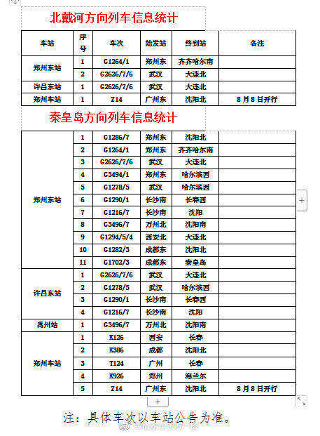 为了进一步强化实名制验证、安检、疫情防控工作,落实安检查危制度,郑州东站、郑州车站、许昌东站、禹州站自2022年7月1日8时至8月31日18时,途经秦皇岛、北戴河方向列车实行旅客“专区候车、二次安检、全面测温”。