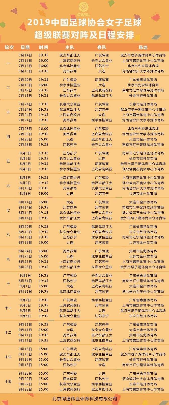 新赛季女超联赛将于7月13日本周六鸣锣开战,9月22日全面收官,在这两个多月的时间里,8支队伍采取主客场双循环制,共计14轮56场比赛。