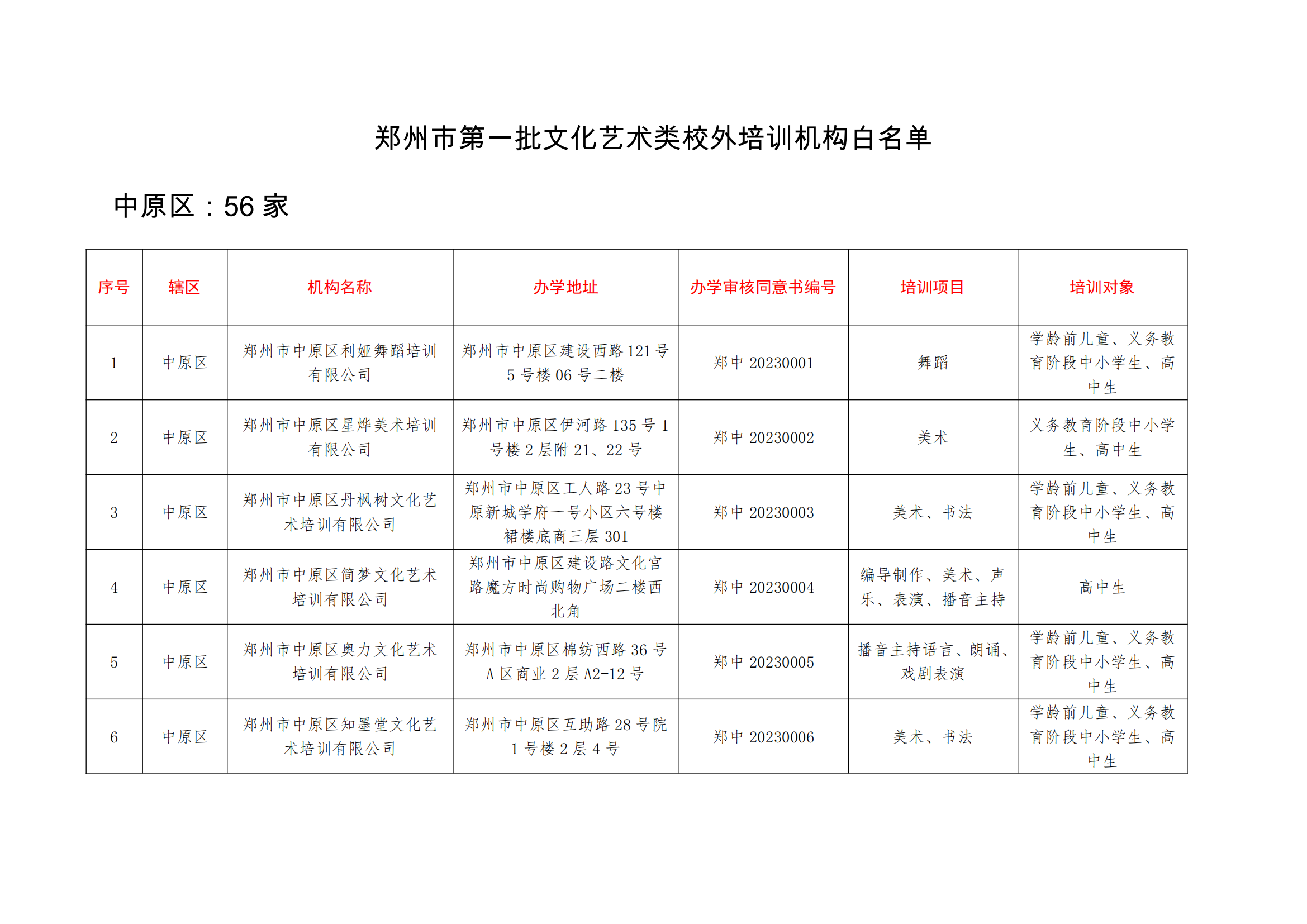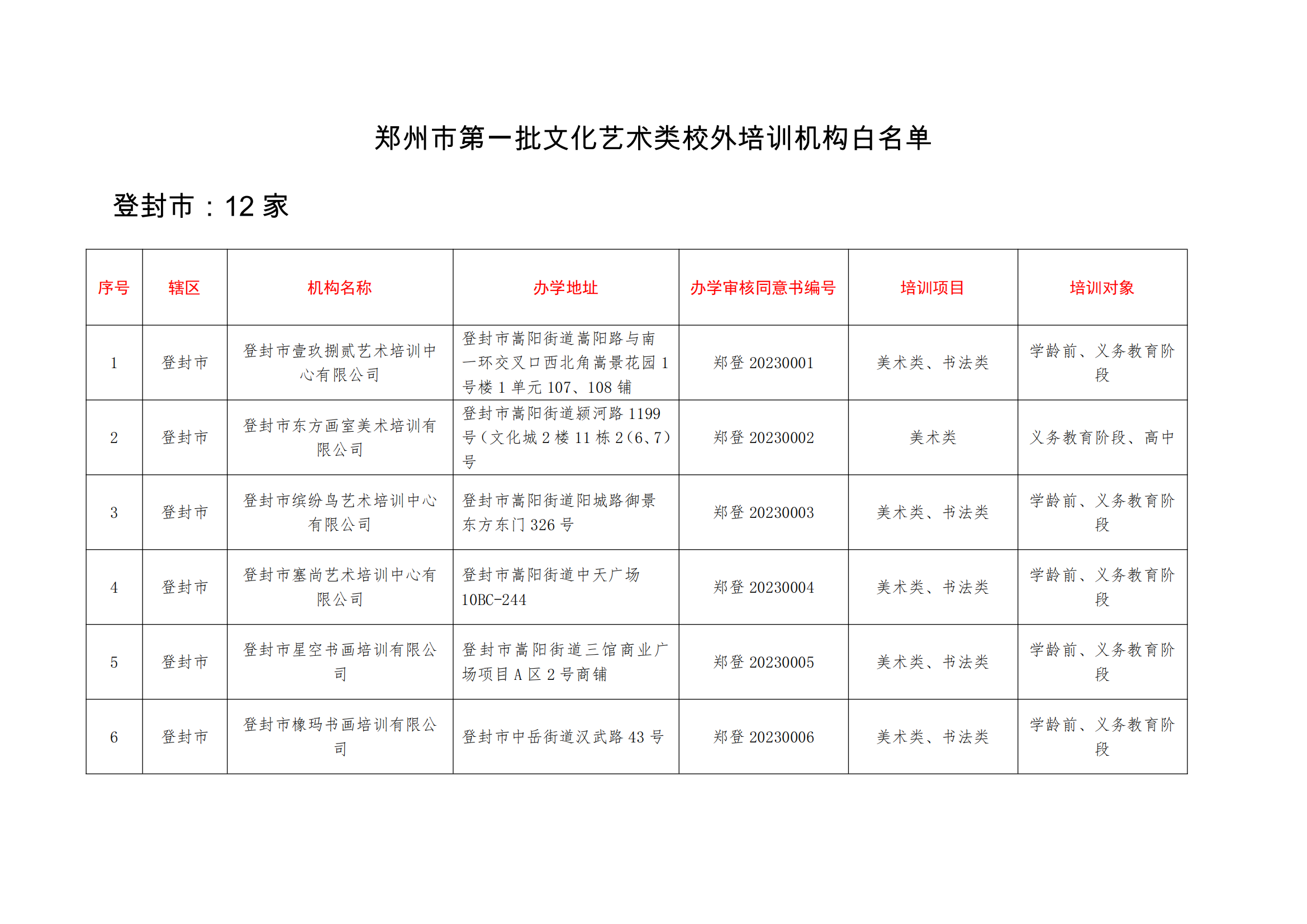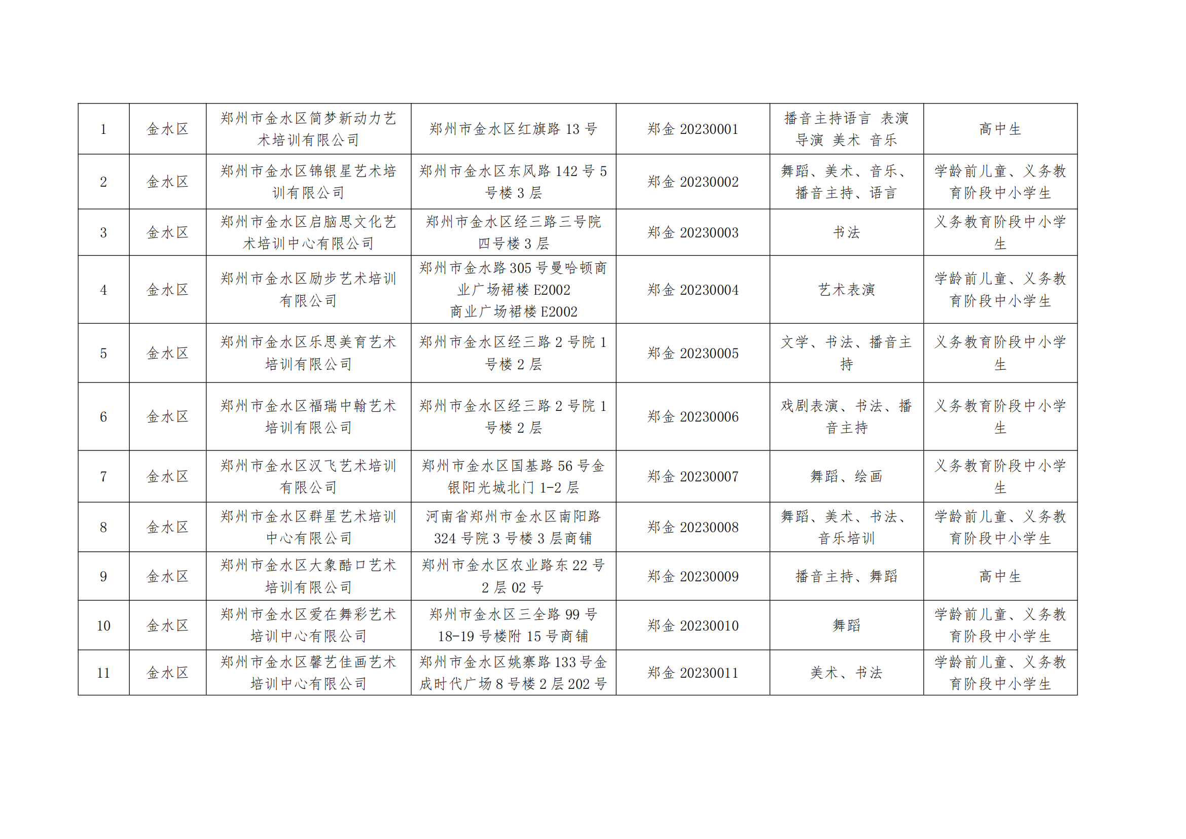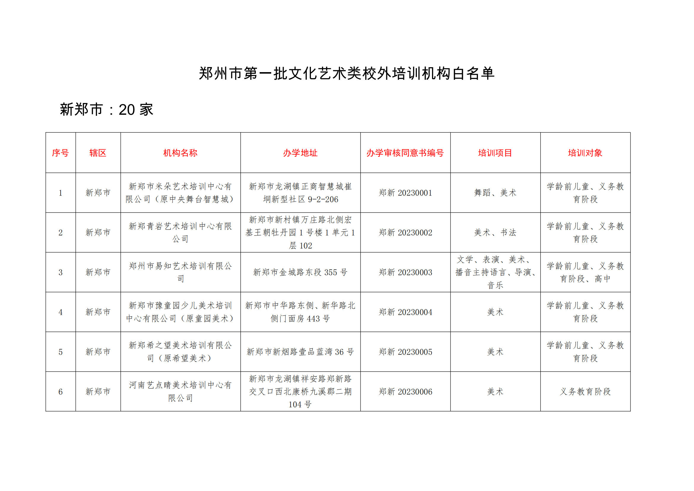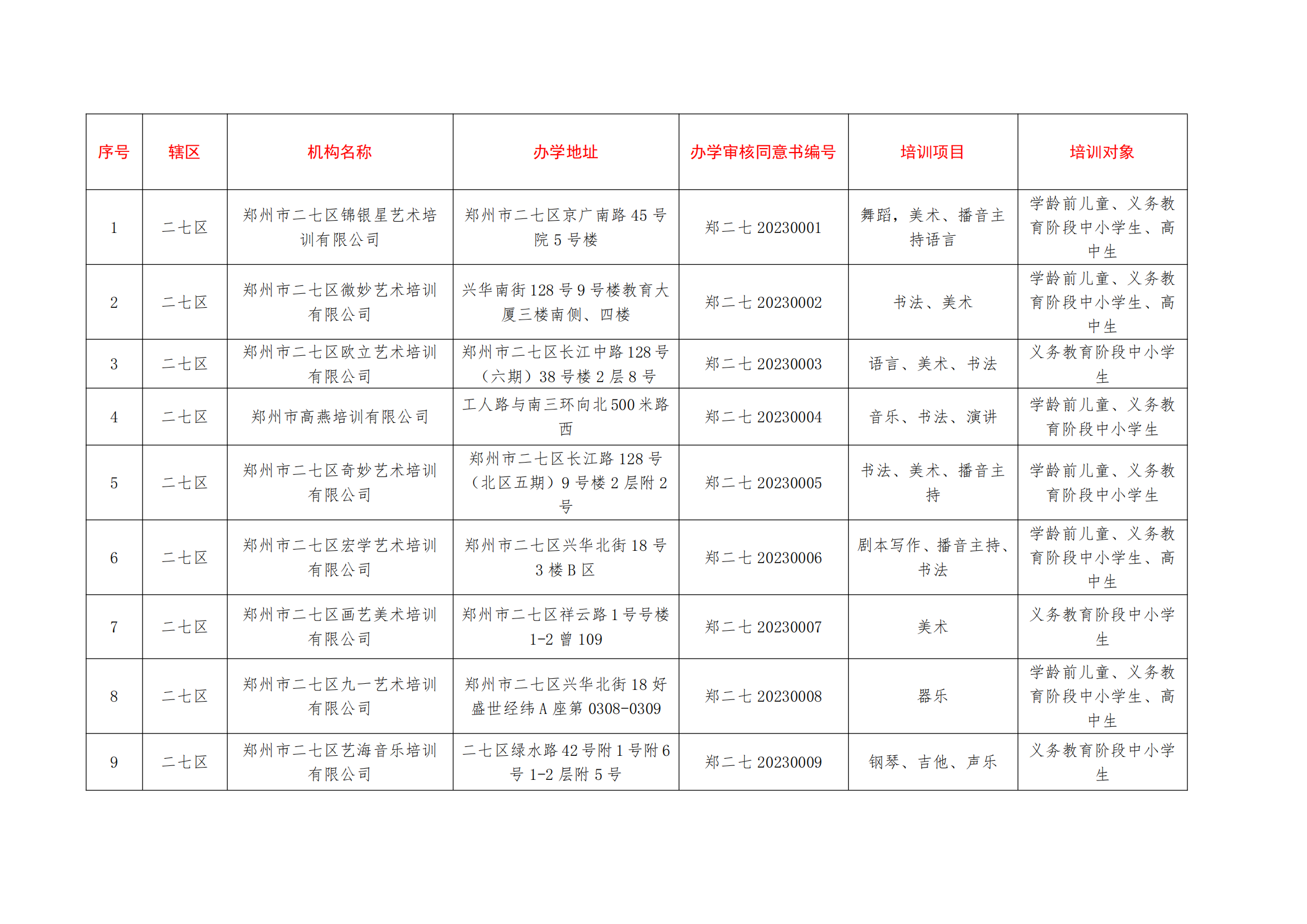 这封信中提到:为持续巩固“双减”工作成效,郑州市文化广电和旅游局自2023年2月10日起,已全面开展文化艺术类校外培训机构重新审核登记和新设立机构审核准入工作,已发布郑州市第一批373家文化艺术类校外培训机构白名单。