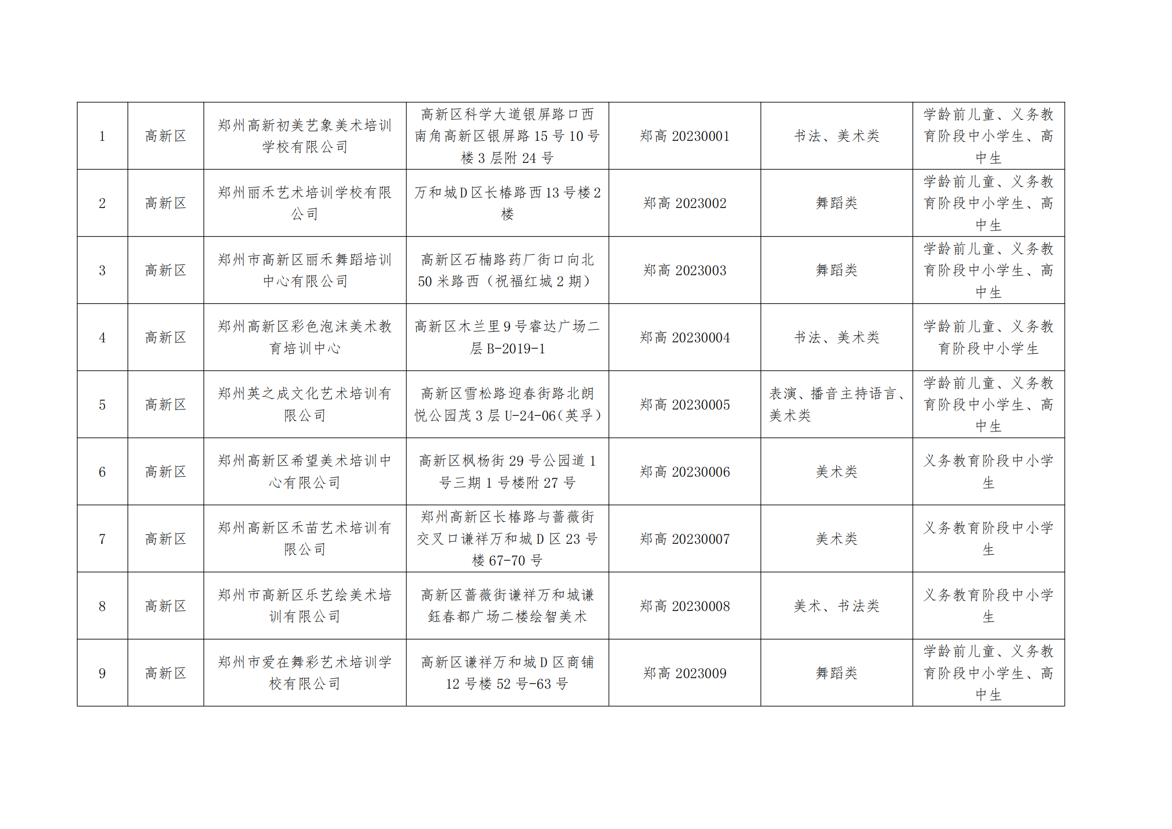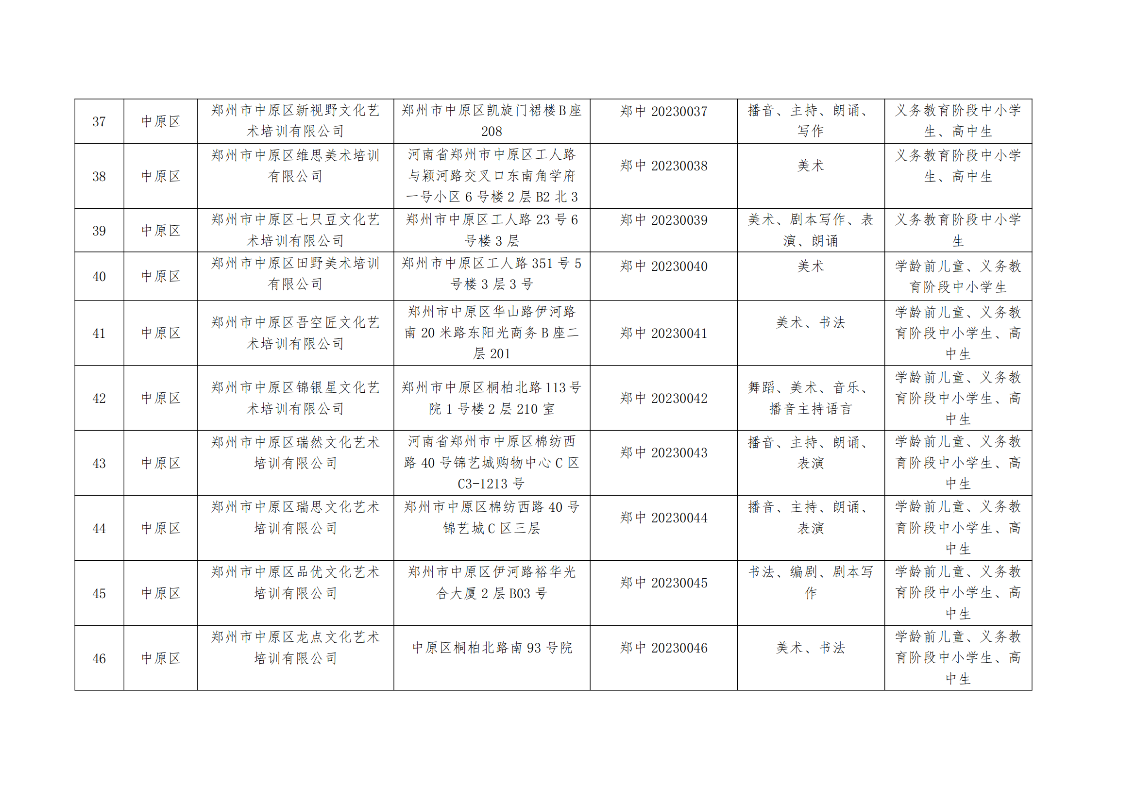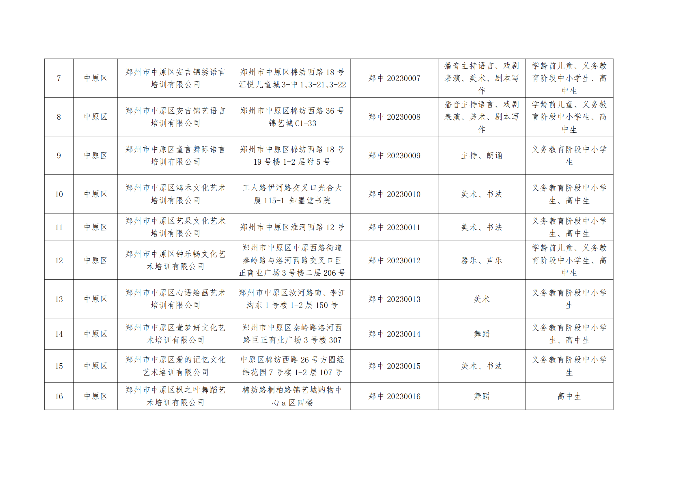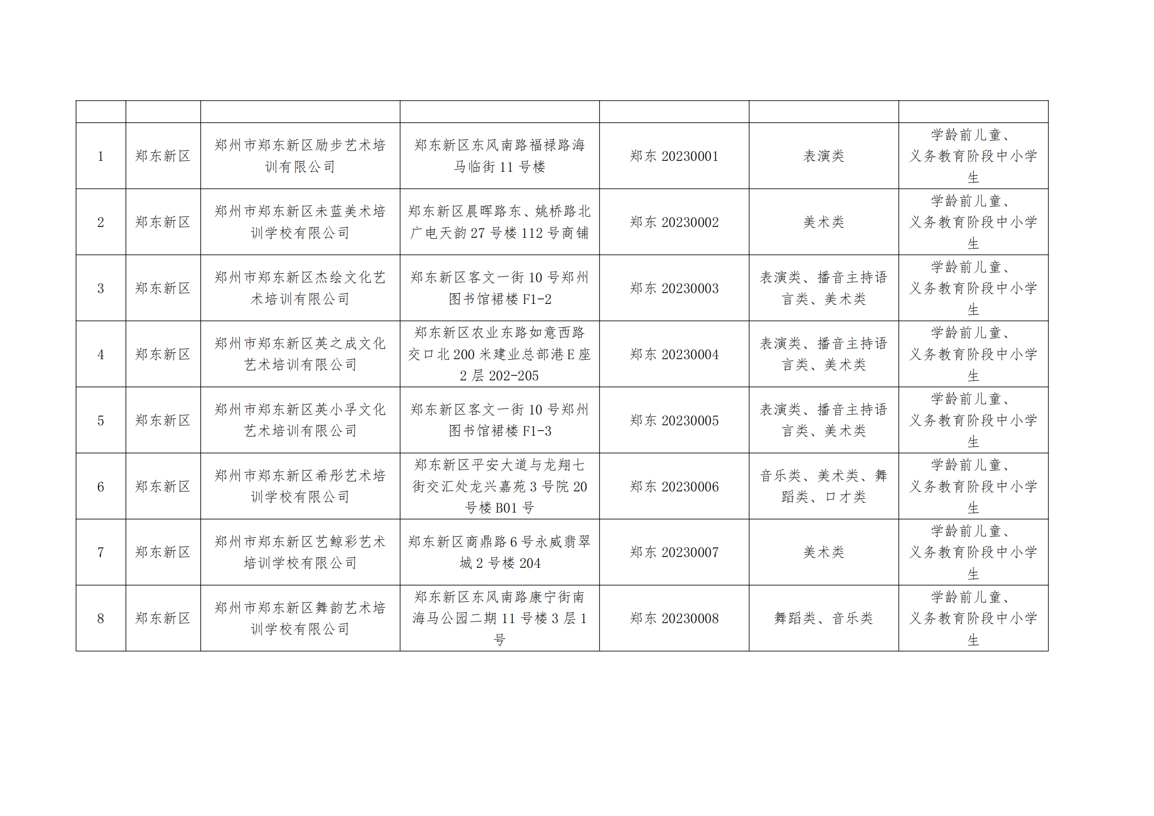 这封信中提到:为持续巩固“双减”工作成效,郑州市文化广电和旅游局自2023年2月10日起,已全面开展文化艺术类校外培训机构重新审核登记和新设立机构审核准入工作,已发布郑州市第一批373家文化艺术类校外培训机构白名单。