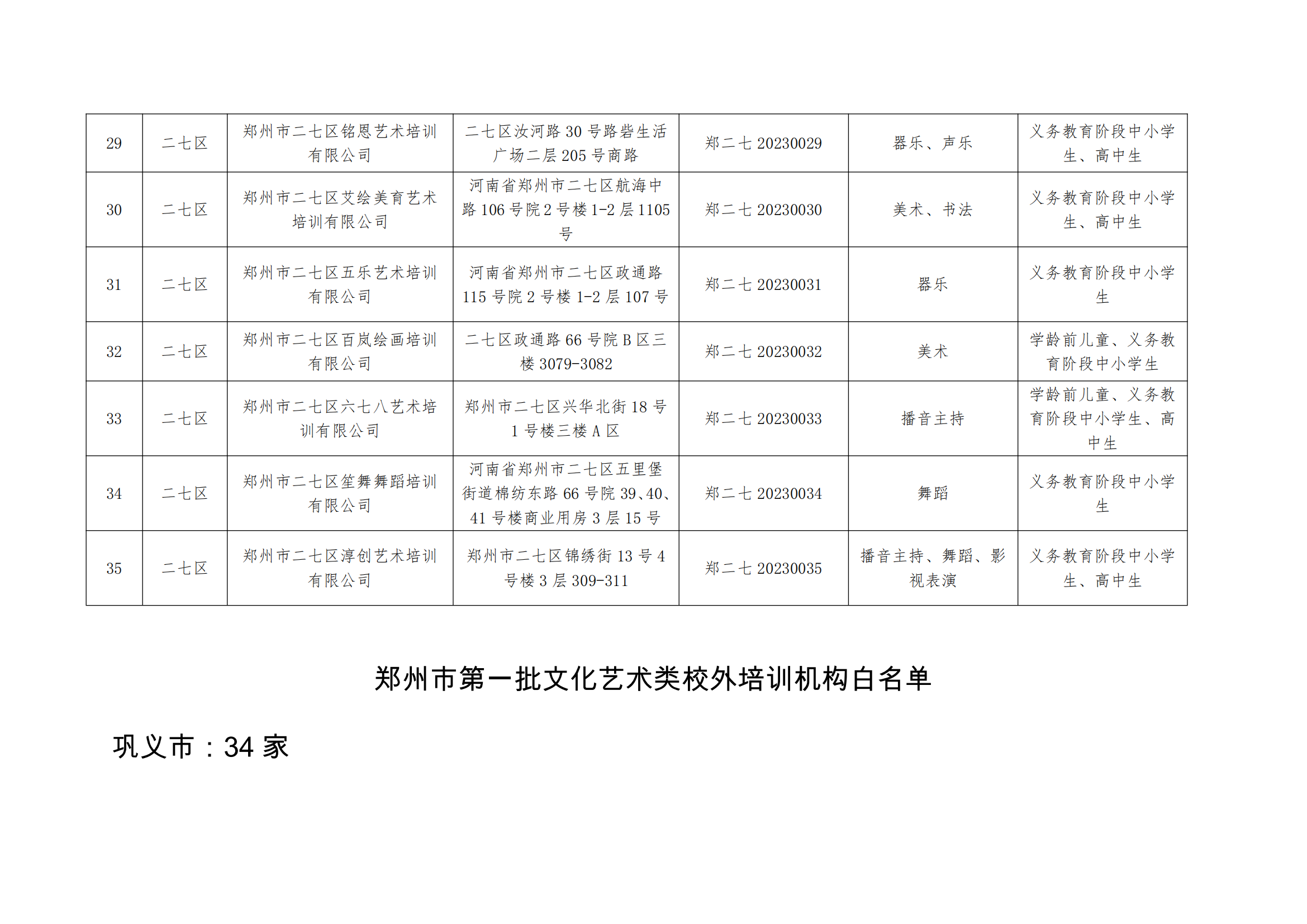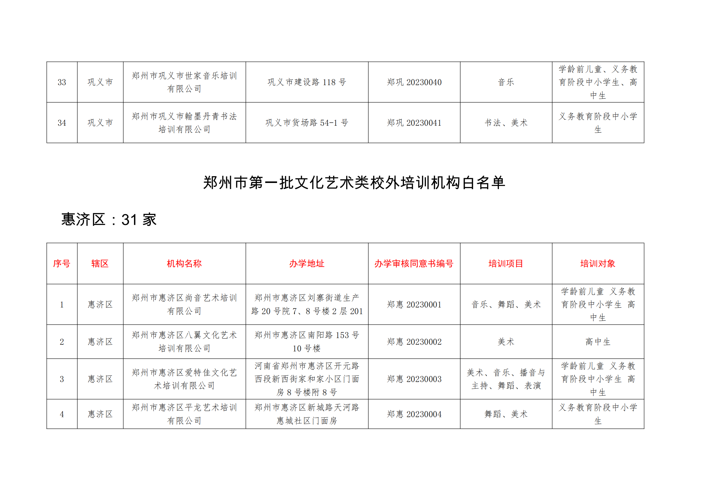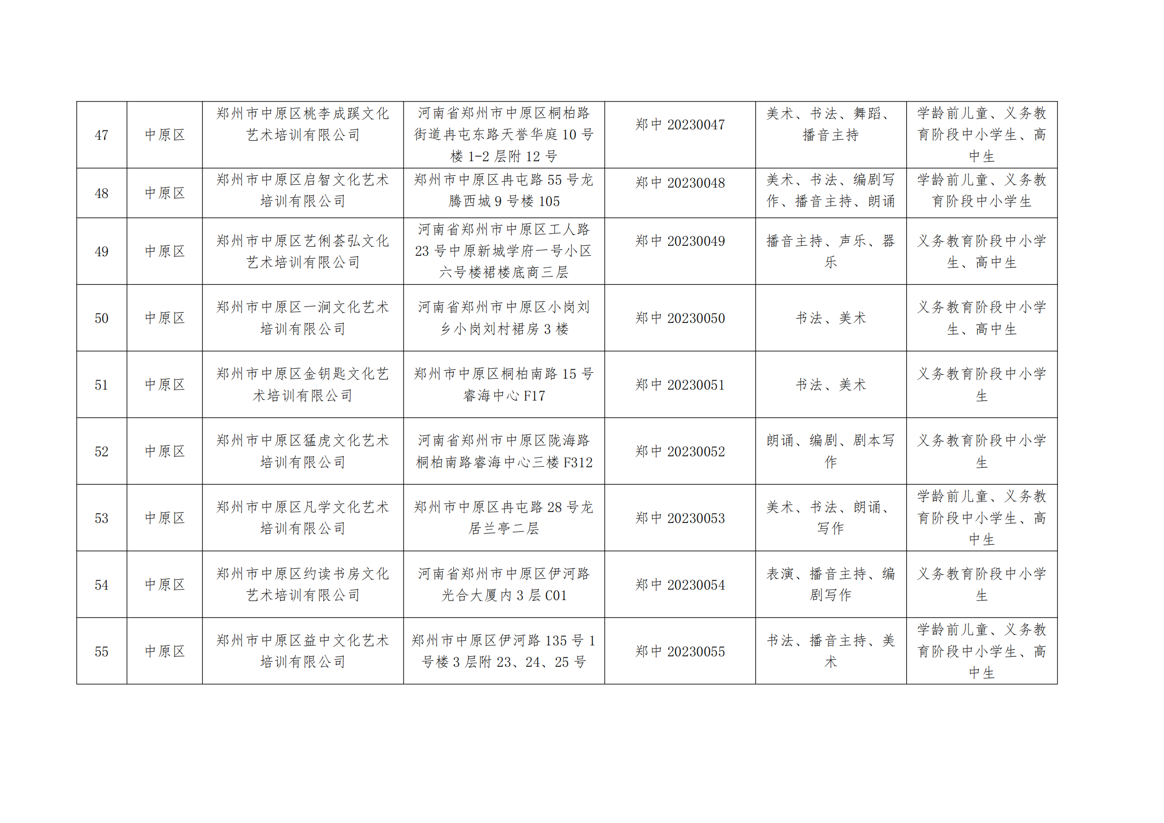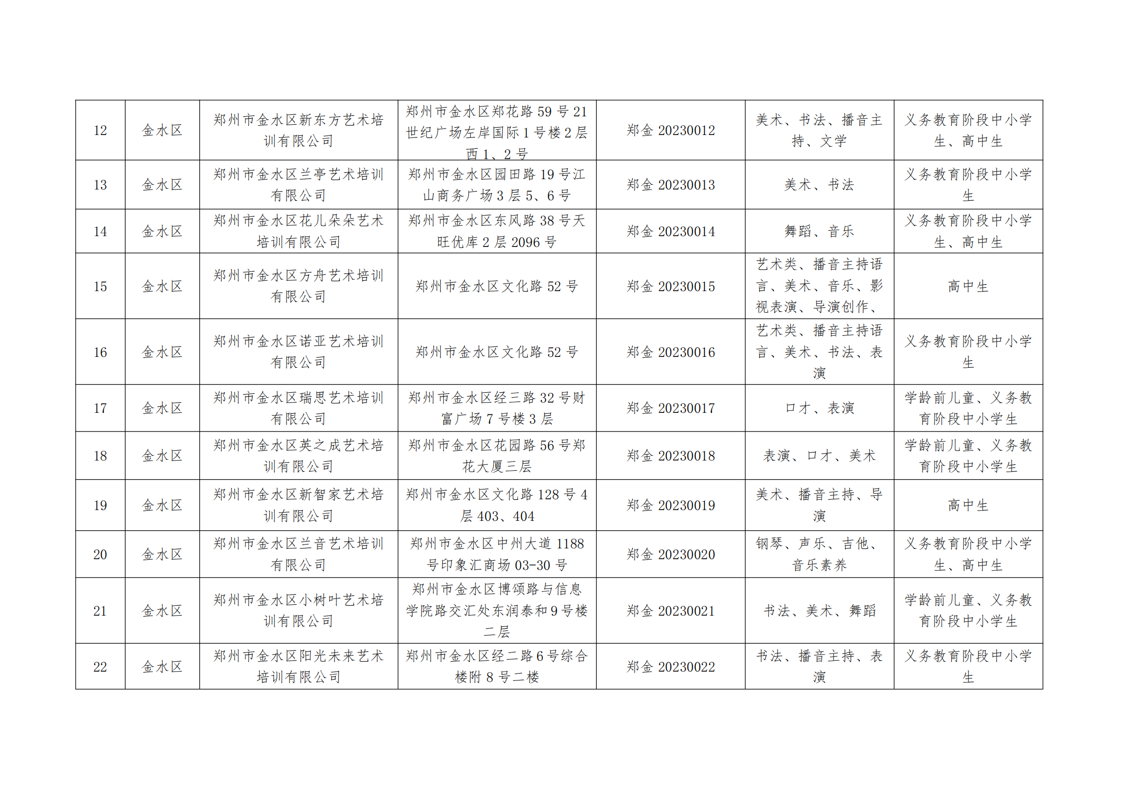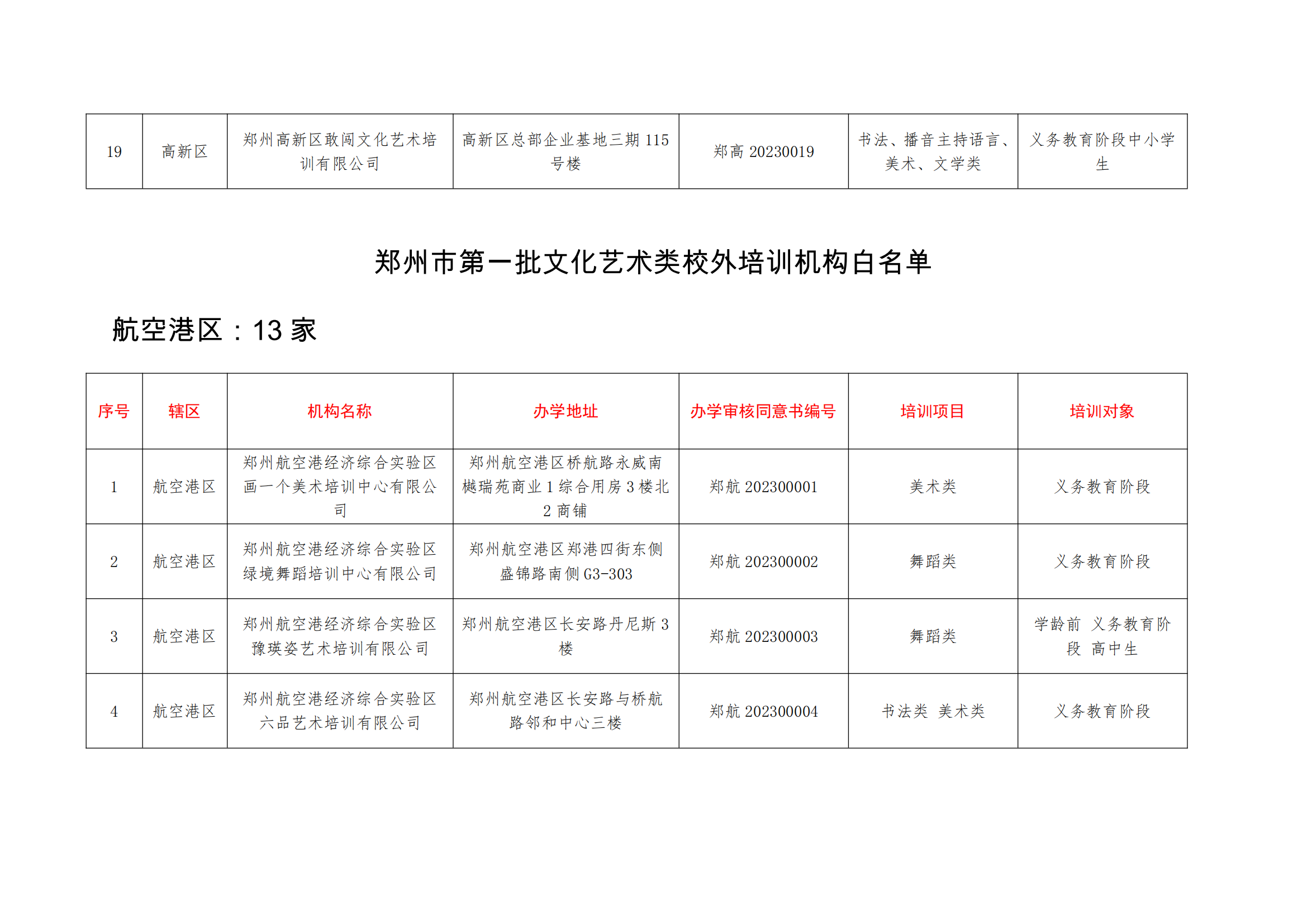 这封信中提到:为持续巩固“双减”工作成效,郑州市文化广电和旅游局自2023年2月10日起,已全面开展文化艺术类校外培训机构重新审核登记和新设立机构审核准入工作,已发布郑州市第一批373家文化艺术类校外培训机构白名单。
