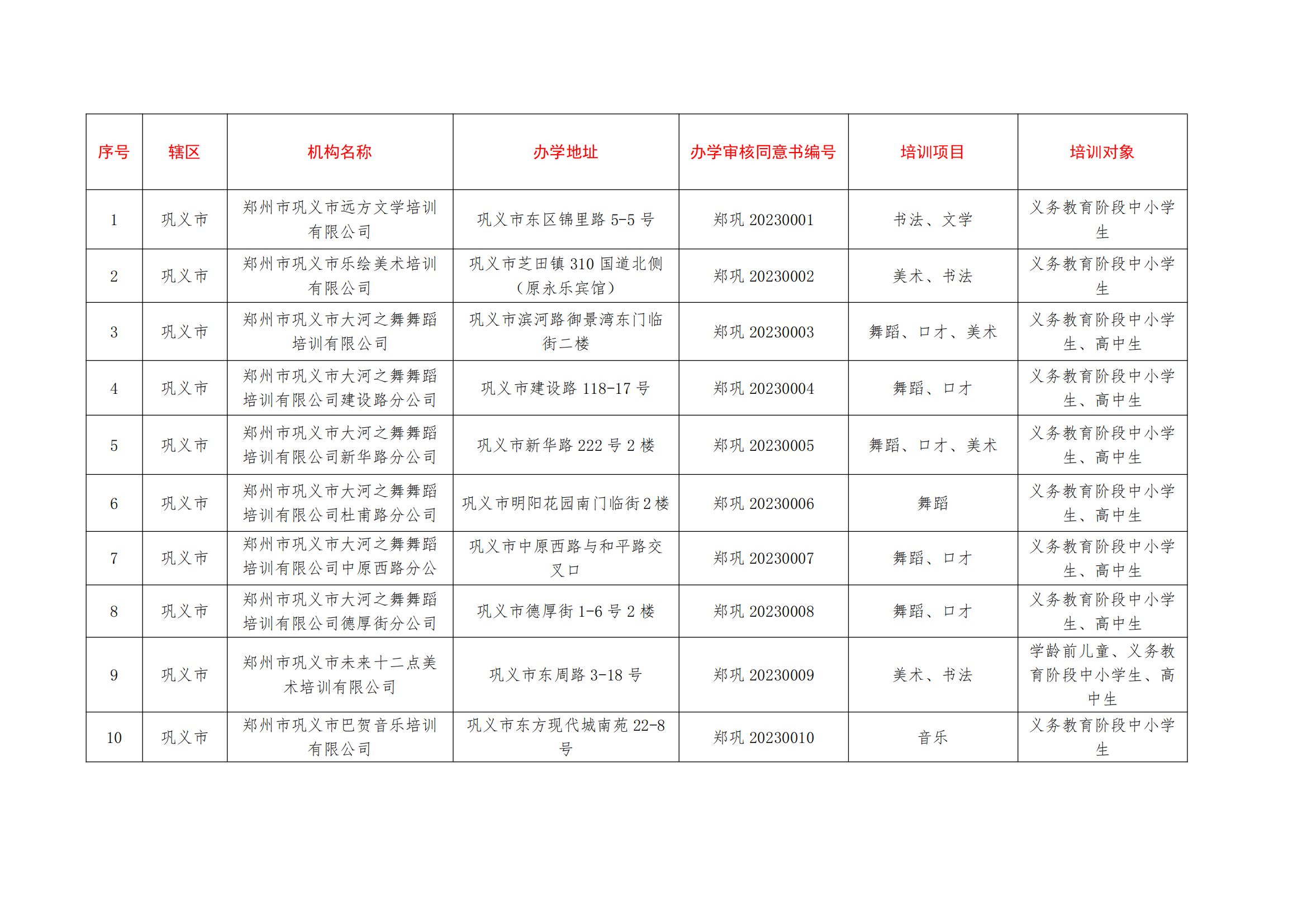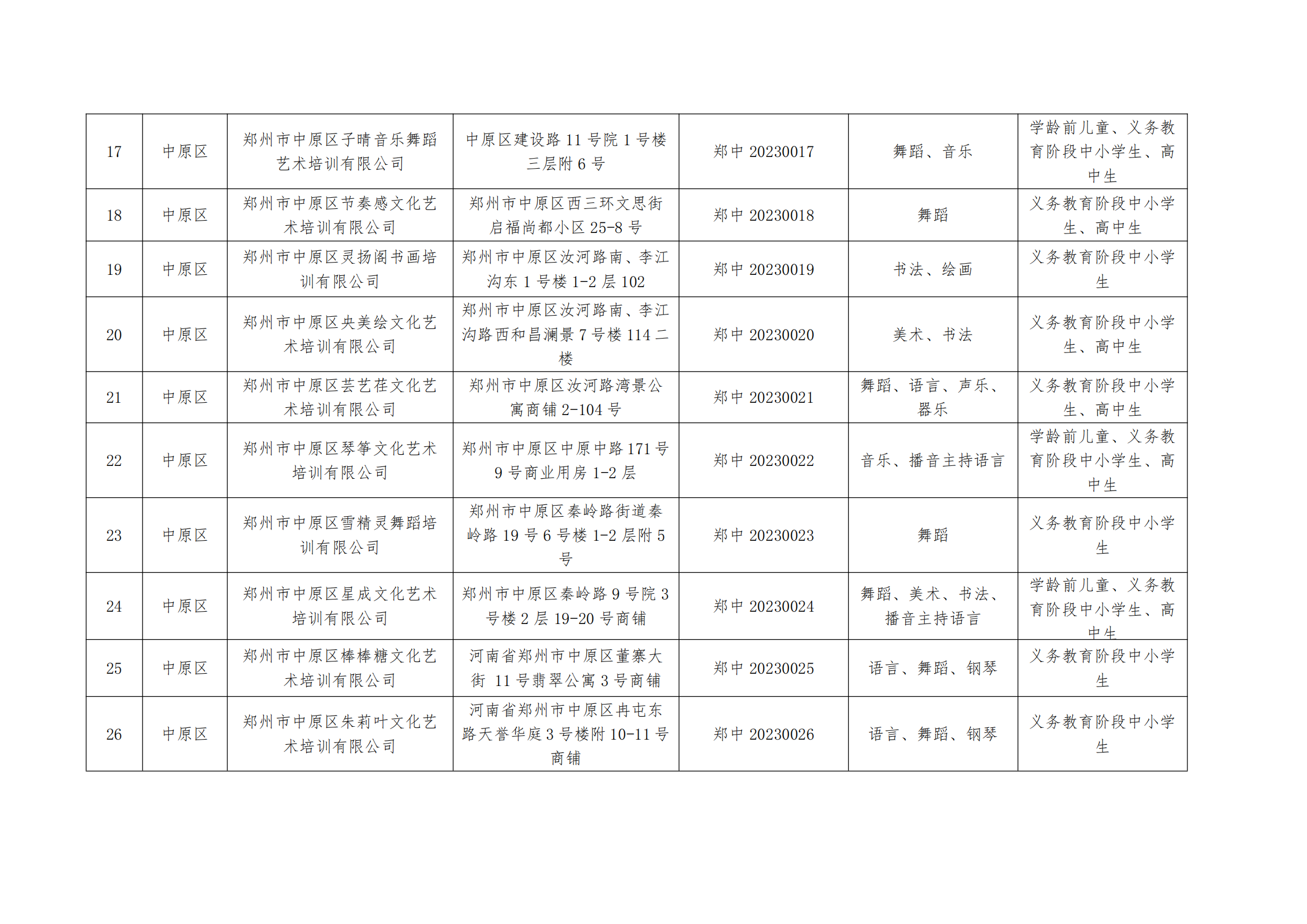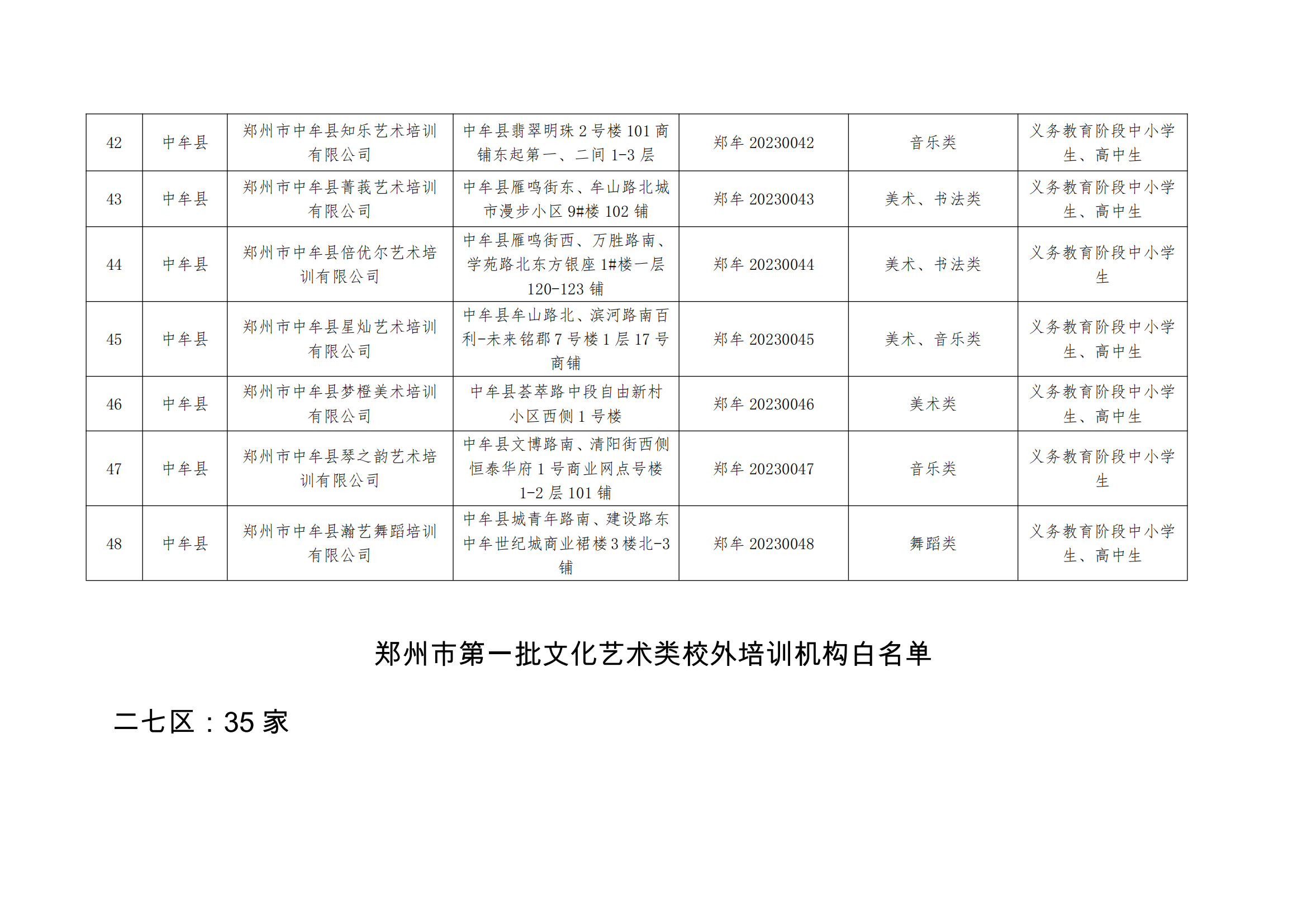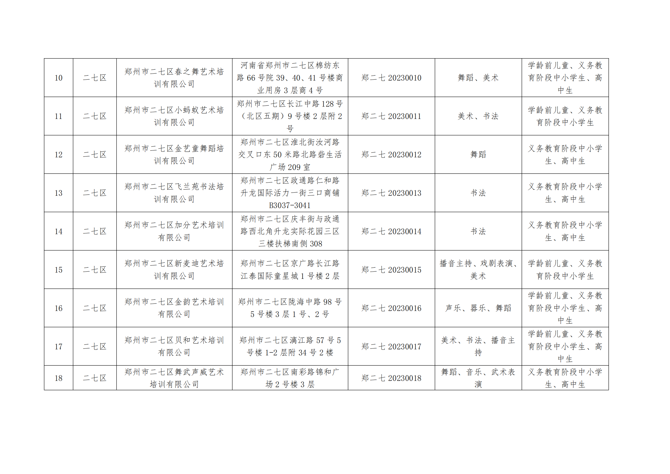 这封信中提到:为持续巩固“双减”工作成效,郑州市文化广电和旅游局自2023年2月10日起,已全面开展文化艺术类校外培训机构重新审核登记和新设立机构审核准入工作,已发布郑州市第一批373家文化艺术类校外培训机构白名单。