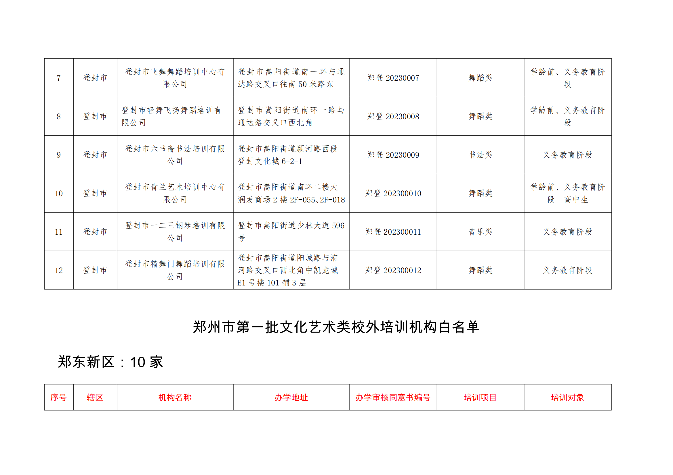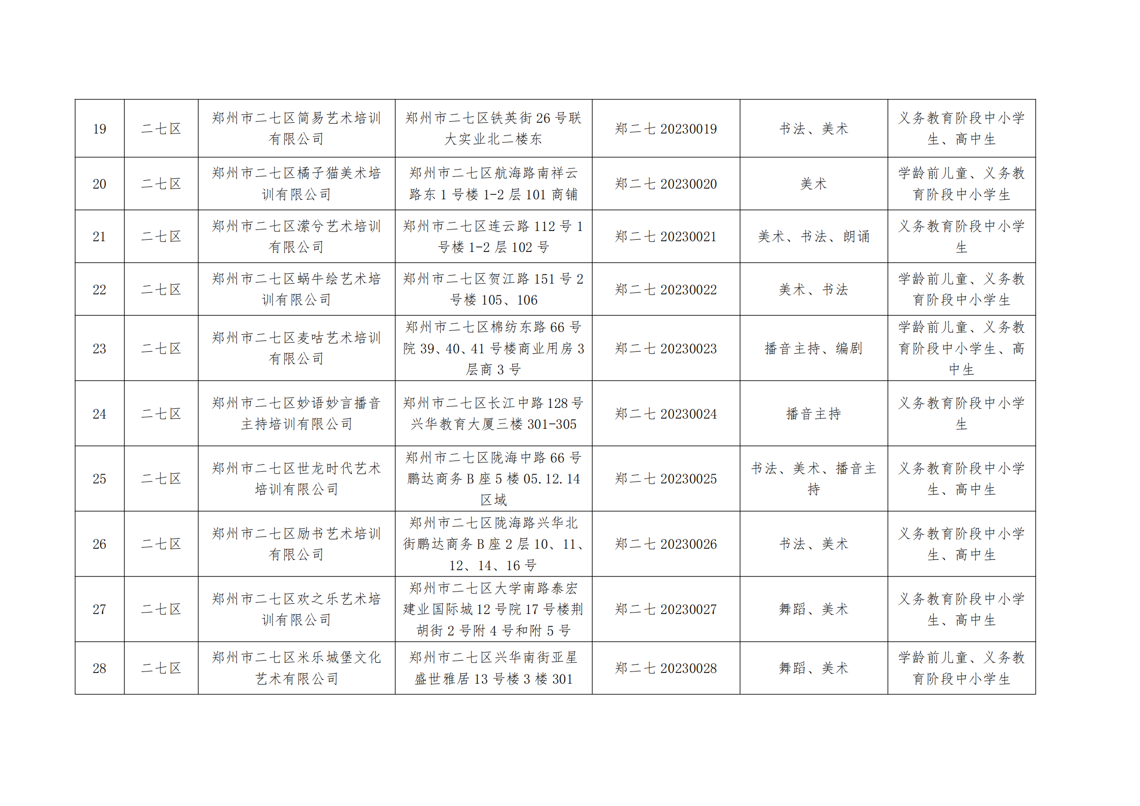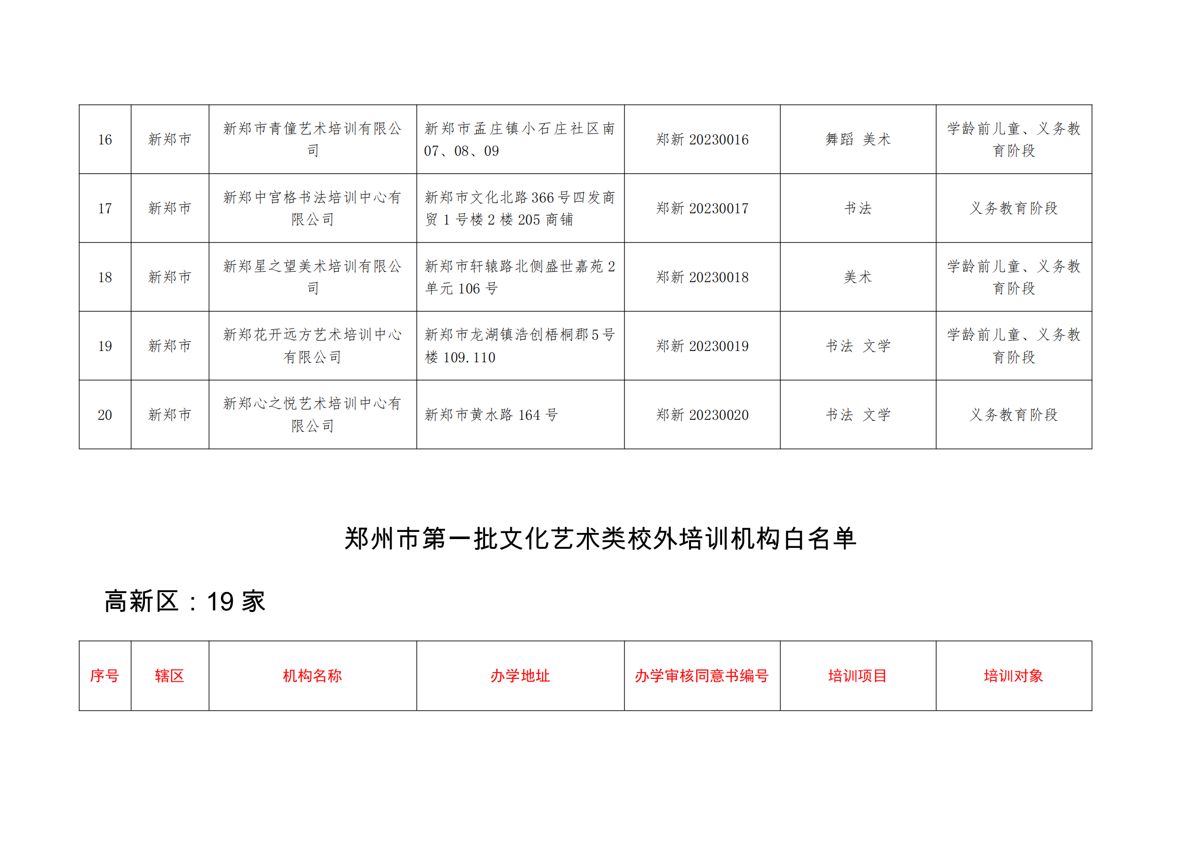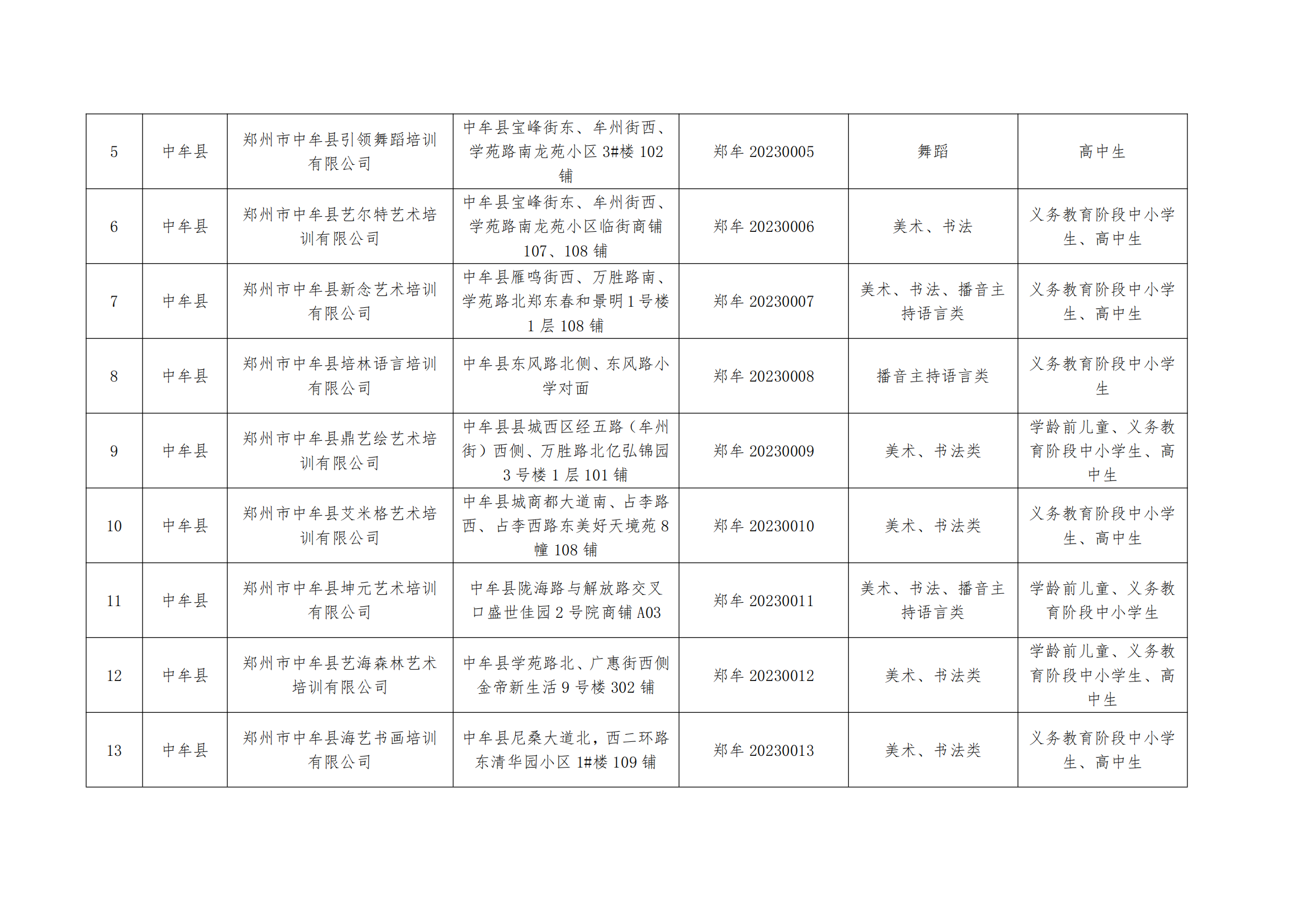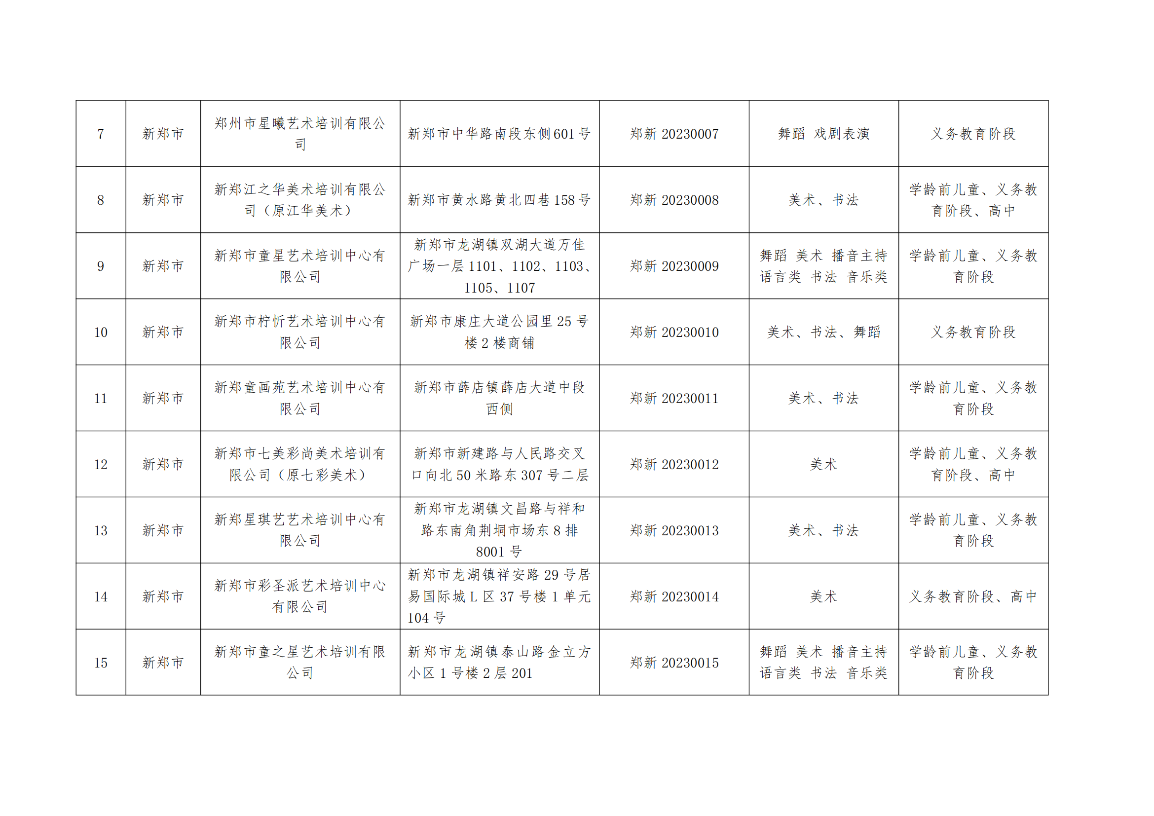 这封信中提到:为持续巩固“双减”工作成效,郑州市文化广电和旅游局自2023年2月10日起,已全面开展文化艺术类校外培训机构重新审核登记和新设立机构审核准入工作,已发布郑州市第一批373家文化艺术类校外培训机构白名单。