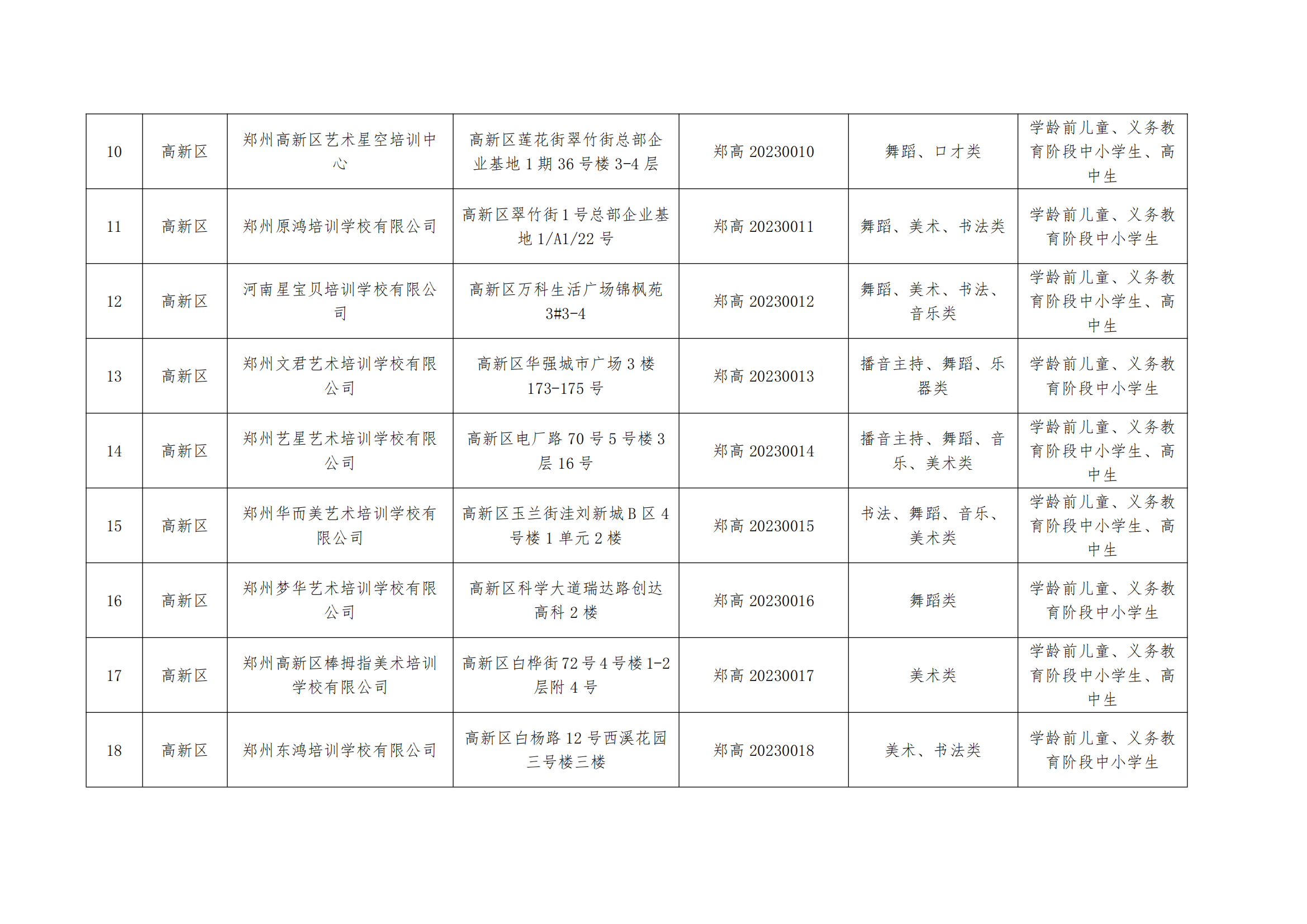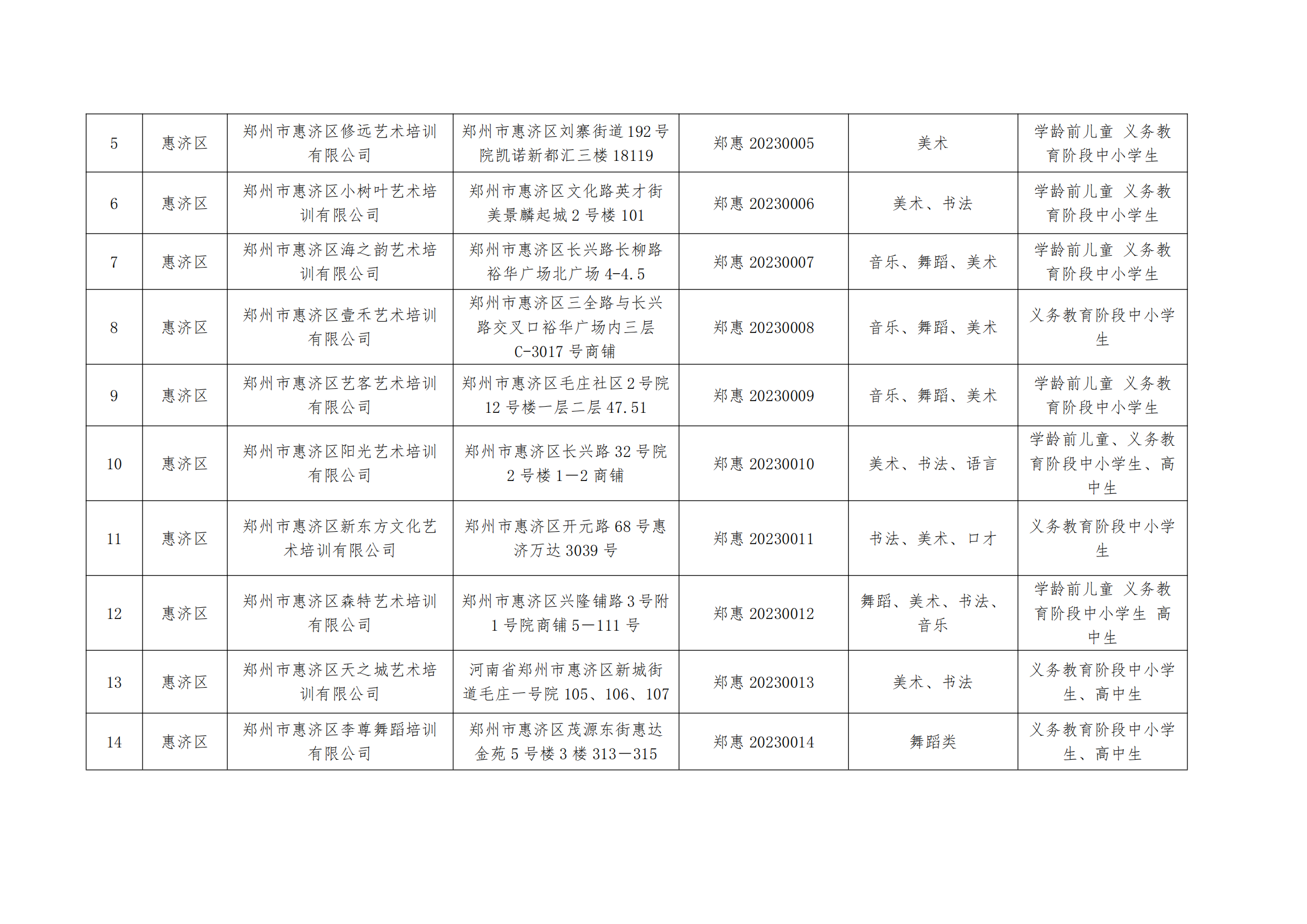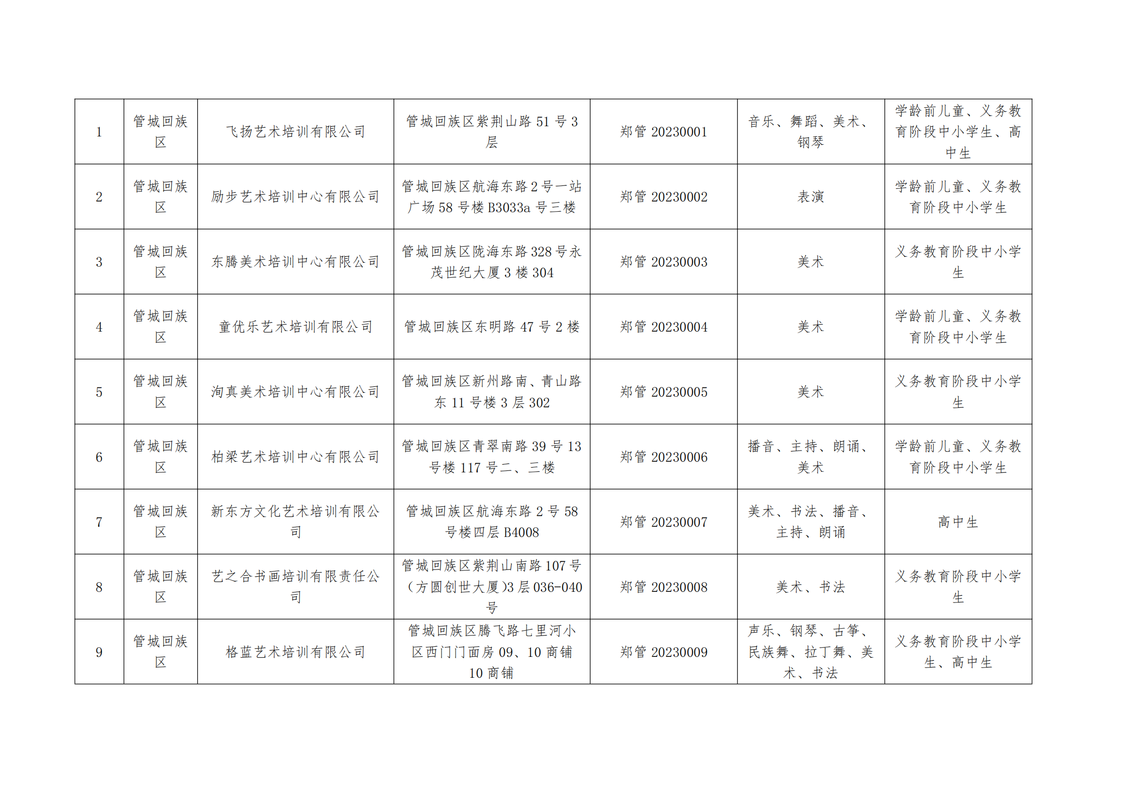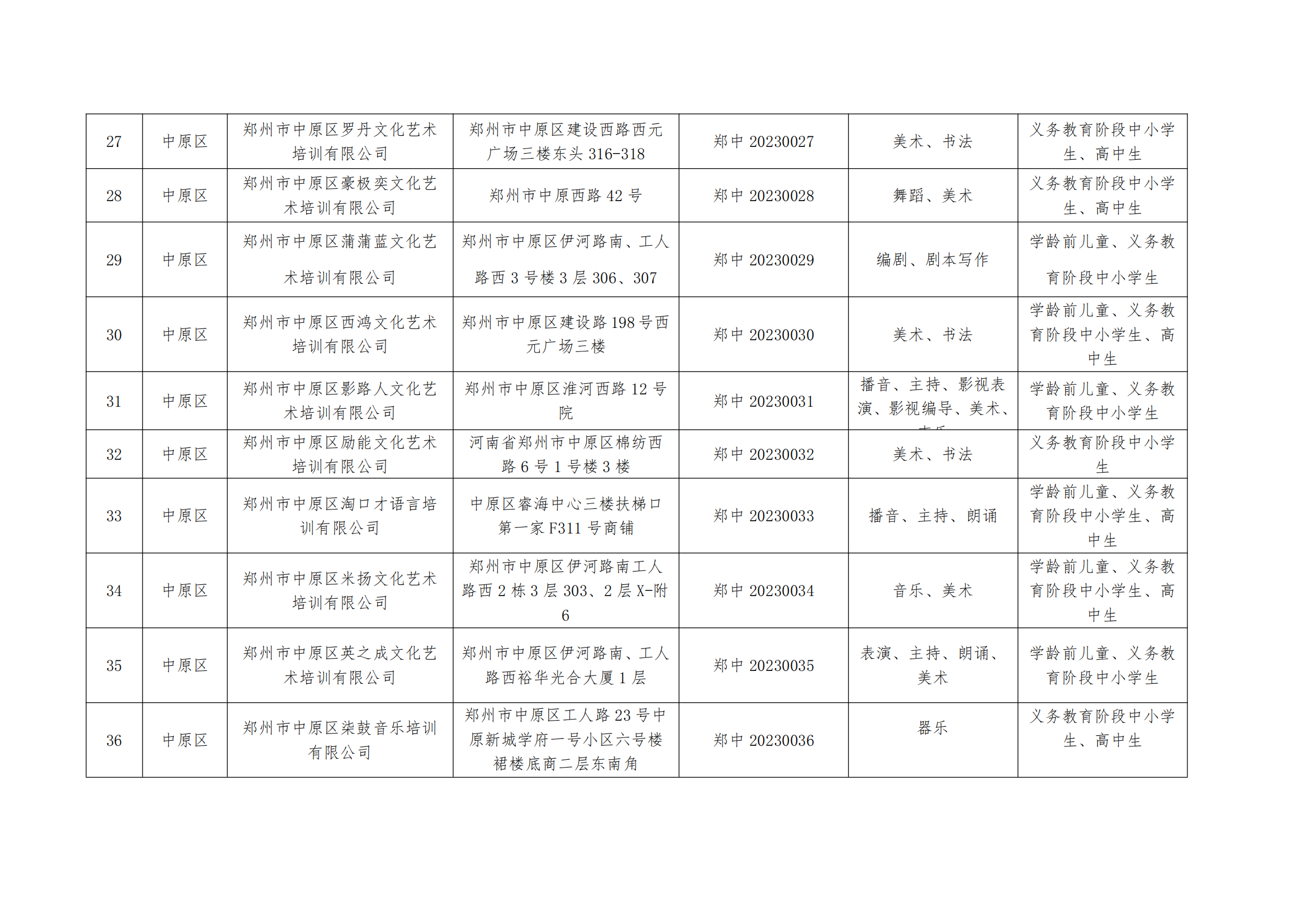 这封信中提到:为持续巩固“双减”工作成效,郑州市文化广电和旅游局自2023年2月10日起,已全面开展文化艺术类校外培训机构重新审核登记和新设立机构审核准入工作,已发布郑州市第一批373家文化艺术类校外培训机构白名单。
