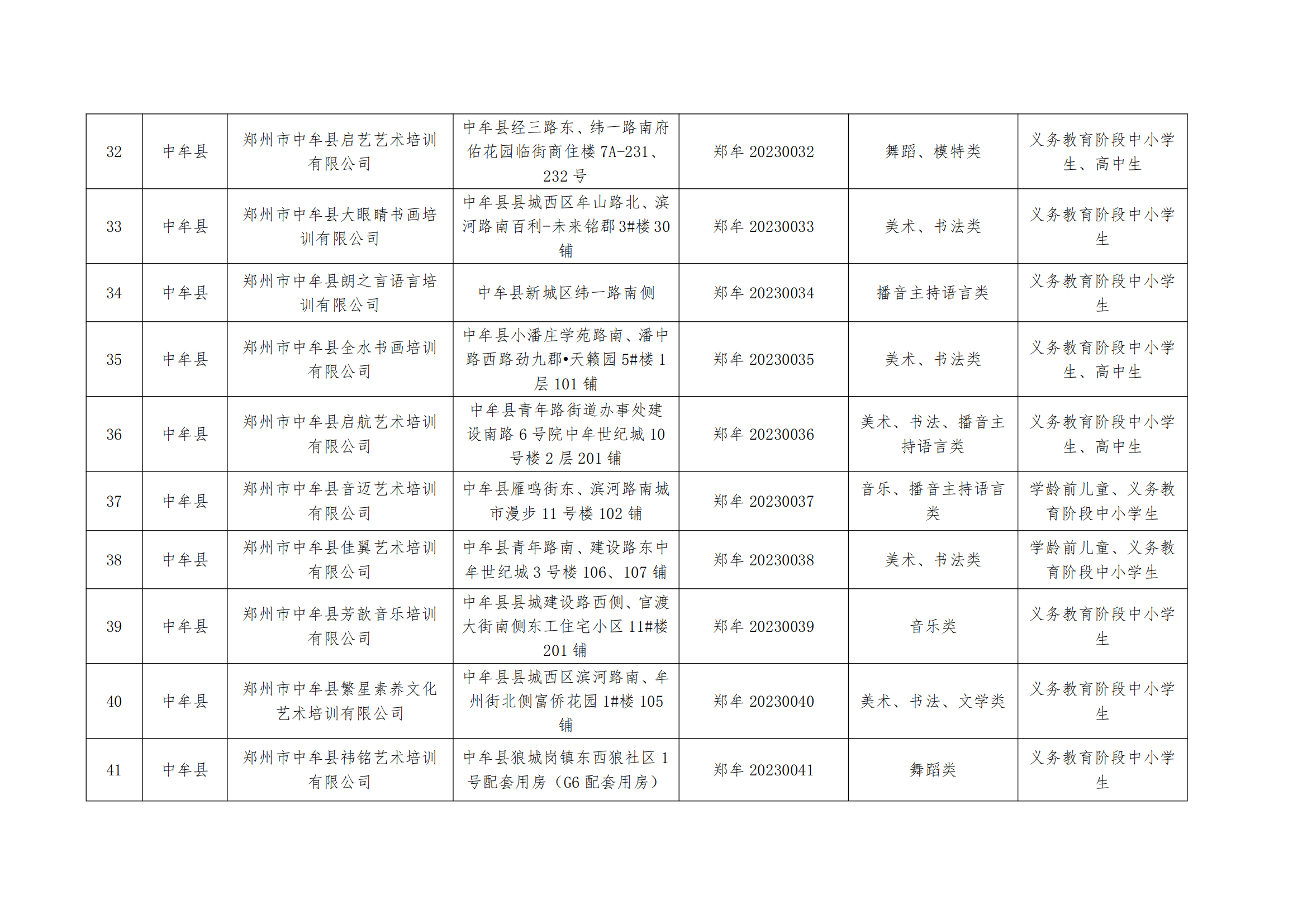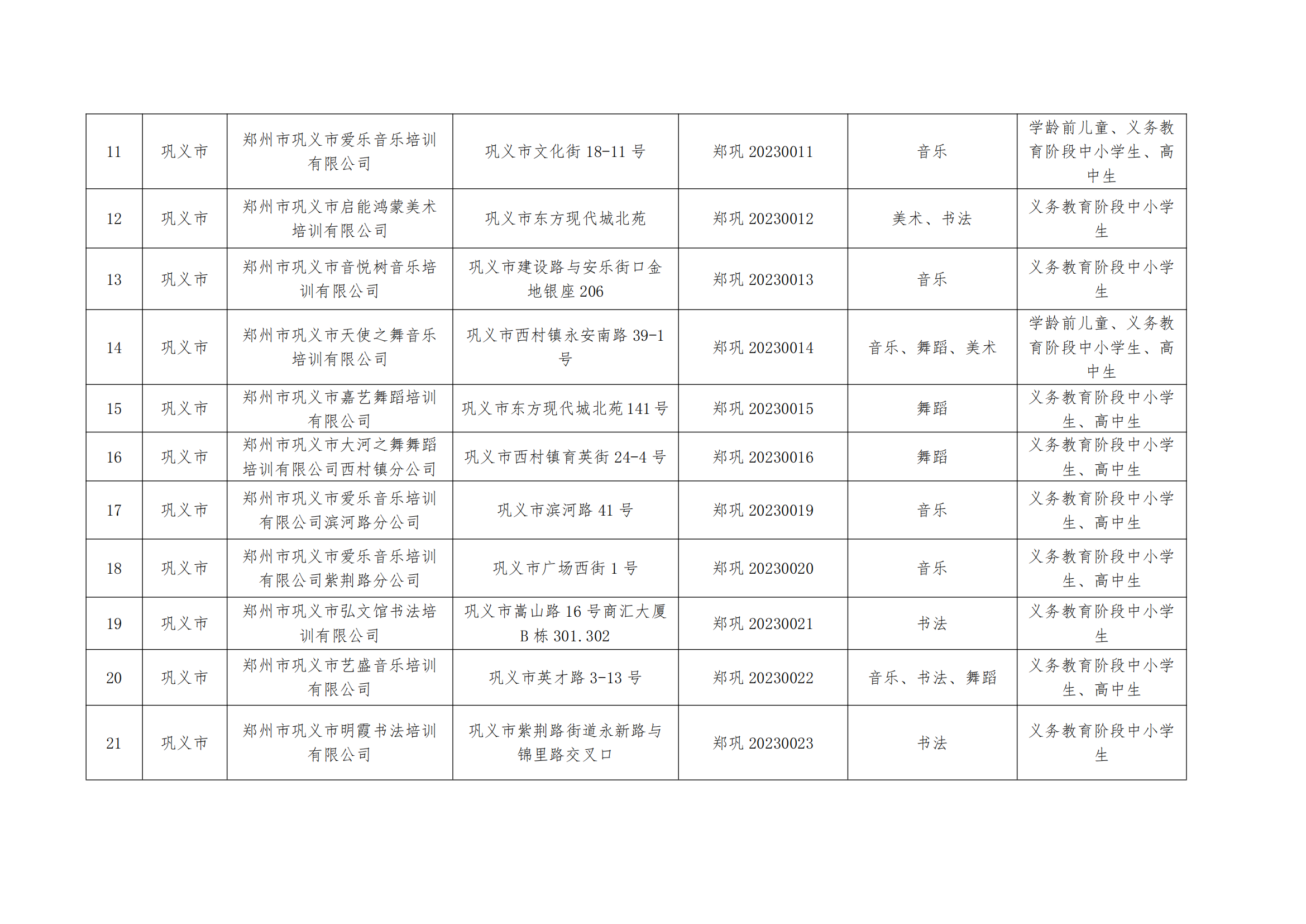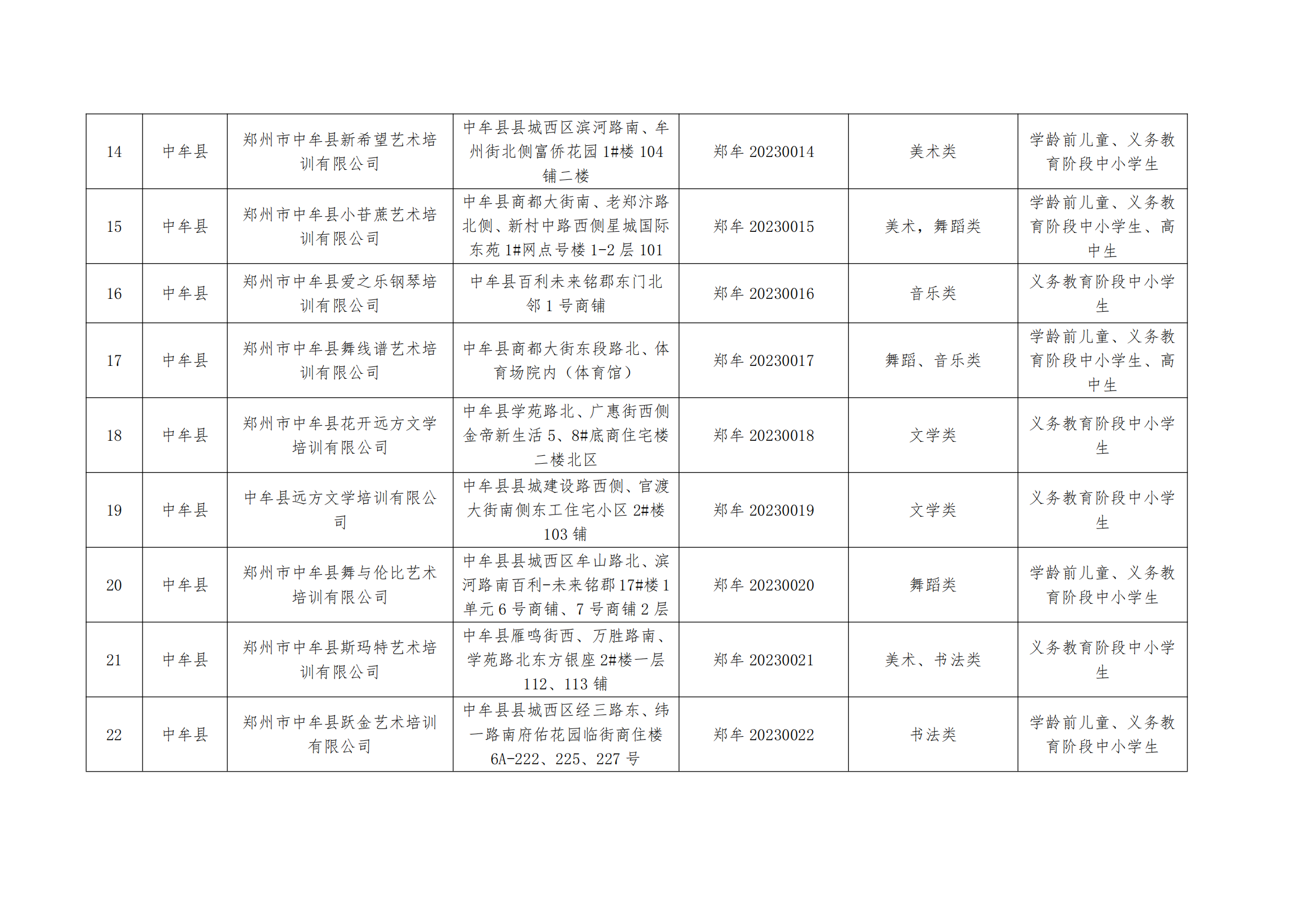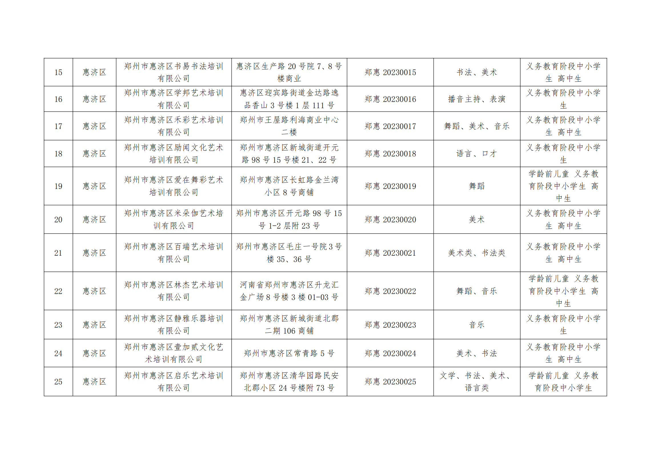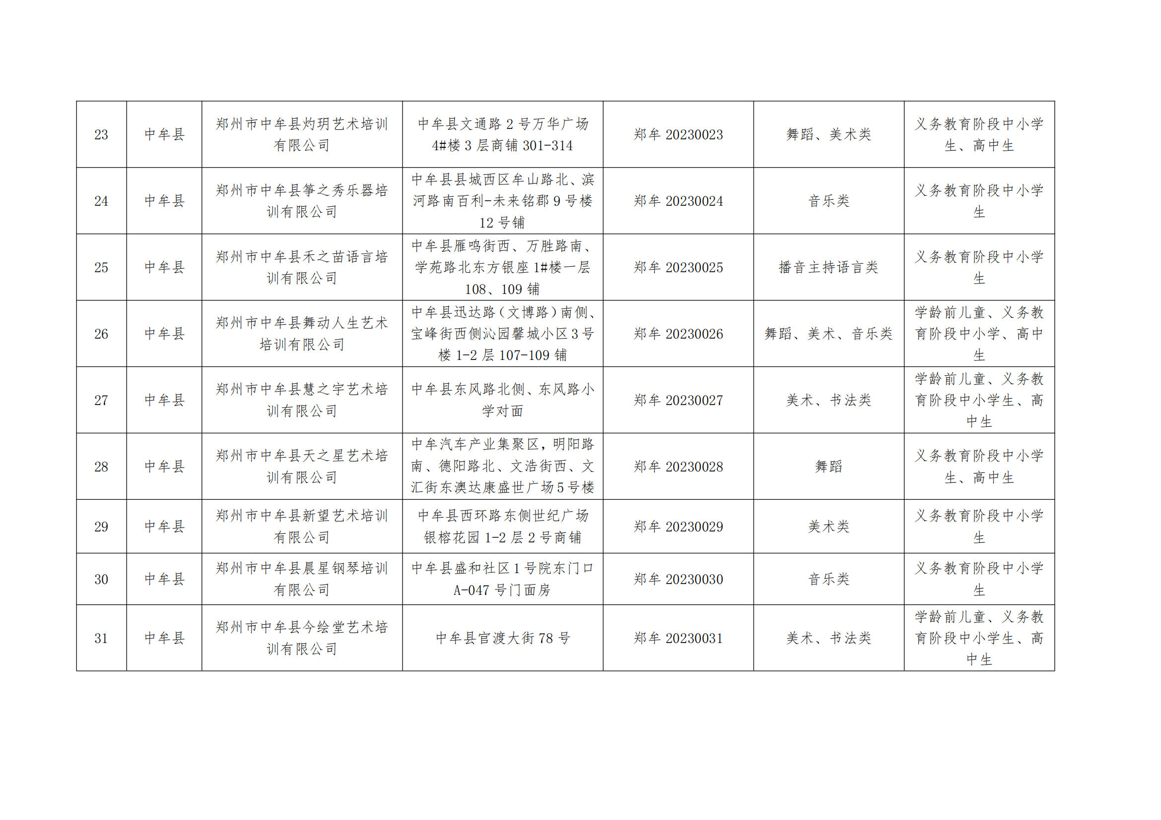 这封信中提到:为持续巩固“双减”工作成效,郑州市文化广电和旅游局自2023年2月10日起,已全面开展文化艺术类校外培训机构重新审核登记和新设立机构审核准入工作,已发布郑州市第一批373家文化艺术类校外培训机构白名单。