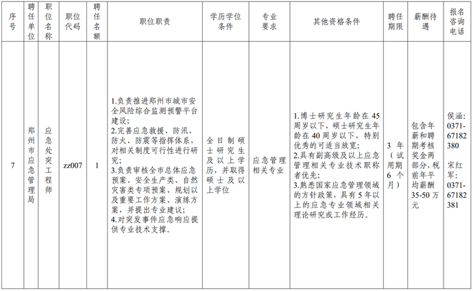 (七)郑州市应急管理局应急处突工程师1名;