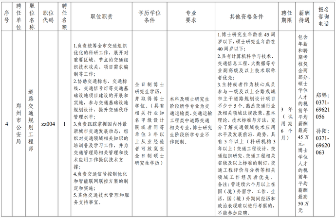 (四)郑州市公安局道路交通规划工程师1名;