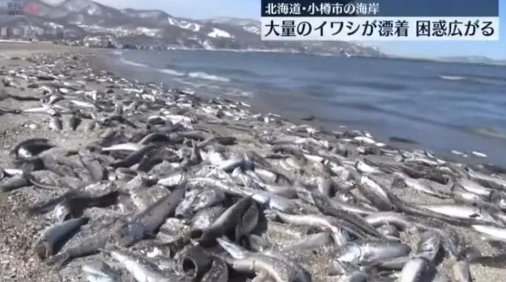 综合日媒报道,近日,北海道小樽市沿岸漂浮了大量死鱼,整个区域绵延约7公里。据报道,漂浮的为沙丁鱼,部分死鱼被海浪拍上沙滩并开始腐烂。当地渔民称,他在此地工作40多年,第一次看到这样的景象。