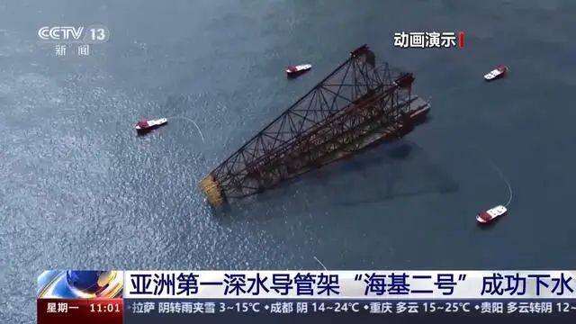 今天上午,亚洲第一深水导管架“海基二号”成功滑移下水,创造了下水重量、作业水深等多项亚洲纪录。