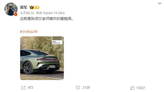 这两日,雷军和张颂文版的“霸道总裁爱上我”一直挂在微博热搜上。31日一早,雷军就发出了为张颂文准备的小米汽车,并称为张老师准备的车是顶配。