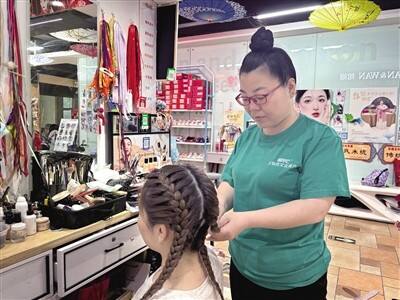 经营之路并非一帆风顺,时代的洪流再次将吕春燕推到了分岔口。“2018年前后,人们的审美开始发生变化,客户自己能够学习编发技巧的途径也变多了,送编发服务的头饰店好像在一夜之间成了时代的记忆。”吕春燕说,彼时买头饰赠送梳头服务的经营模式已不再被大众接纳,如何开辟一条新的经营模式成为当时亟待解决的问题。