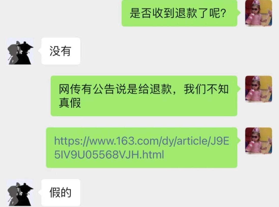 对于该文及所附日期为8月11日的《退款公告》配图,多名参投者称“假的”“锤了”“就是拖”,叙述此前的协商未取得进展、退款要求被拖延,且公司各种人员“失联”,已难以沟通表达退款诉求。