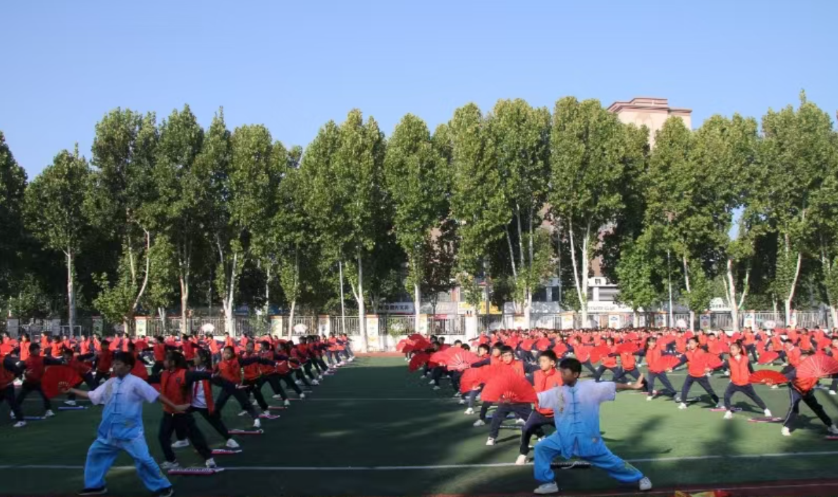 口风琴丝丝入耳,环绕校园;功夫扇以柔克刚、刚柔并济,扇子的开合之间,既有太极拳的柔韧,又有武术的刚劲,四年级的学生们用手中的扇子和口风琴,展现其独特魅力。