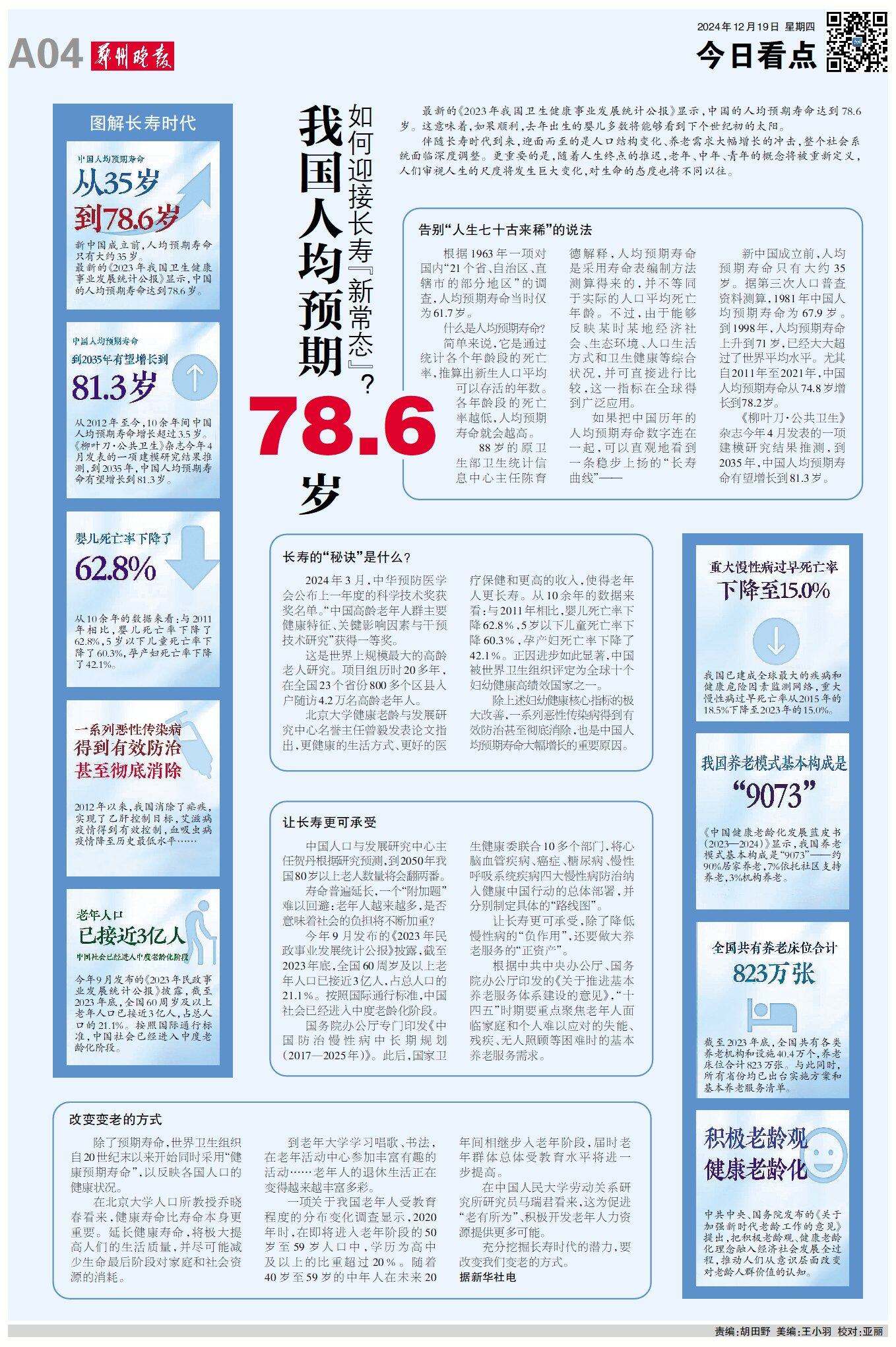 最新的《2023年我国卫生健康事业发展统计公报》显示,中国的人均预期寿命达到78.6岁。
