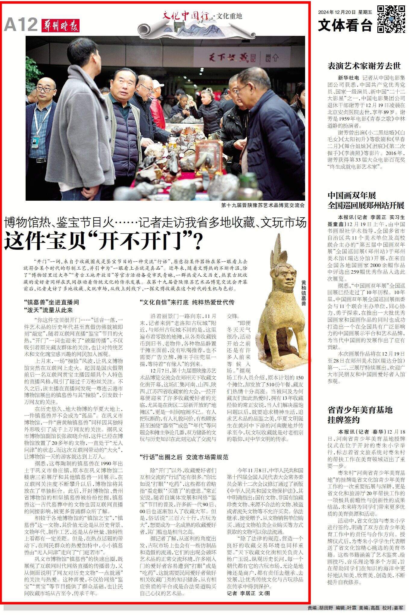 “开门”一词,来自于收藏圈或是鉴宝节目的一种交流“行话”,原意指某件器物在第一眼看上去就符合某个时代的形制工艺,并引申为“一眼看上去就是真品”。近年来,随着文博热的不断升温,除了“博物馆里过大年”“考古工地开放日”等官方活动备受市民青睐,一群热爱人文历史,热衷古玩收藏的爱好者同样在民间推动着传统文化的传承发展。在第十九届晋陕豫苏艺术品博览交流会开幕前后,记者走访了多地收藏、文玩市场,从线上到线下,一探文博收藏在这个时代的生机与色彩。