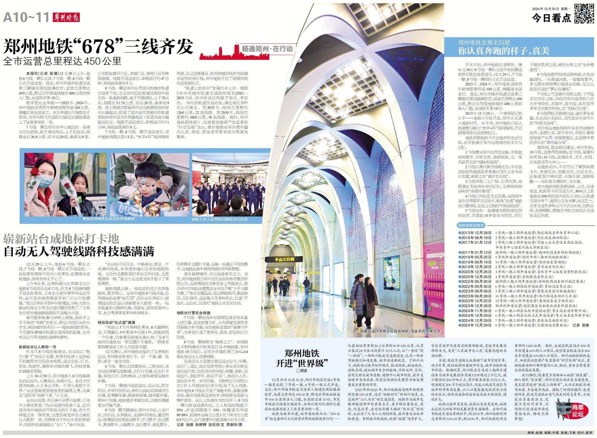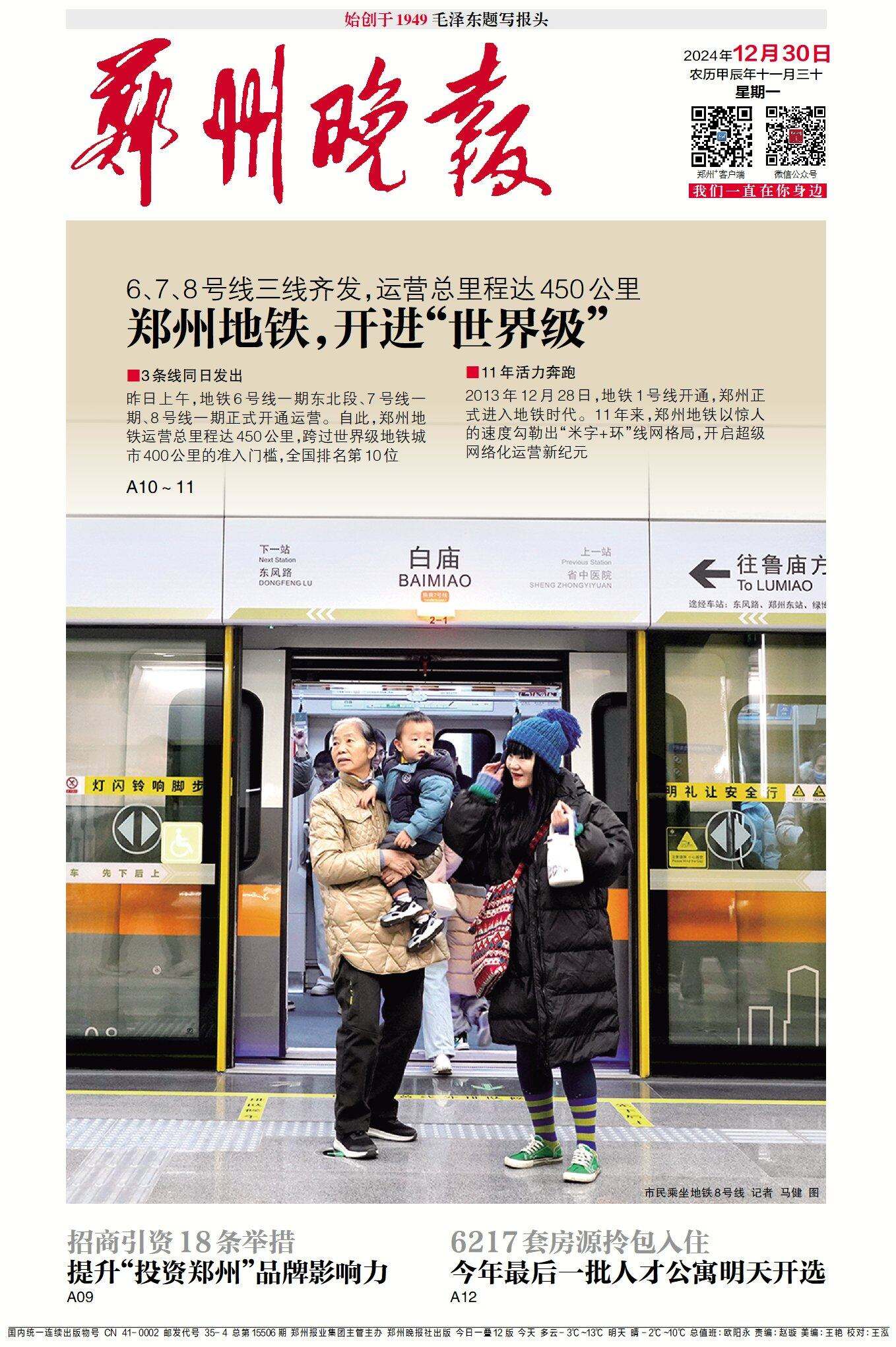 数字里见证幸福——2023年、2024年,郑州地铁连续两年新增里程突破100公里,增幅位居全国首位。市民幸福出行指数处于前列,为郑州现代化国际化建设加速推进添上了浓墨重彩的一笔。