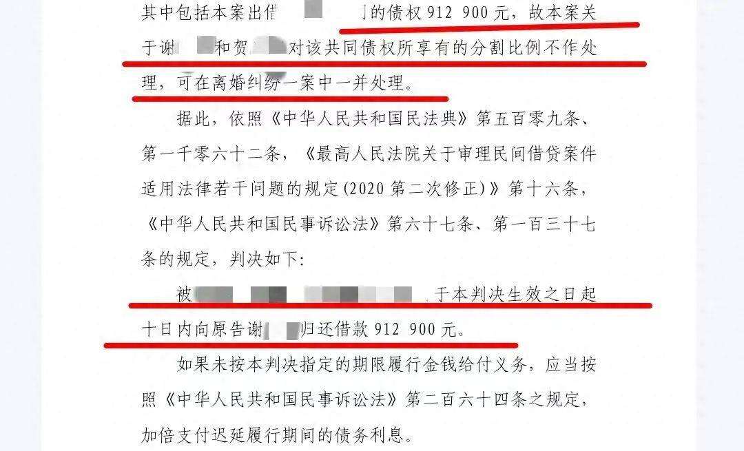 2月10日,记者从“2年被家暴16次”当事人谢女士处获悉,其收到一则民事纠纷判决书,判决其前夫母亲名下公司归还借款912900元。对此,谢女士表示,自己不作指望,“因为孩子的抚养费也一分没有拿到”。其称,自己不要钱,要的是公平公正。