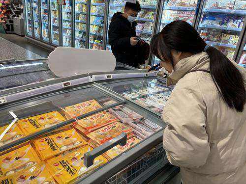 元宵节前夕,记者走访盒马鲜生、沃尔玛等超市,看到汤圆销售区的冰柜中陈列着三全、思念、湾仔码头、缸鸭狗等多个品牌的汤圆。去年的爆款产品“柿柿如意”汤圆再度上架,造型独特的“招财进宝”汤圆吸引了不少消费者驻足选购,“鸿运锦鲤”汤圆外观十分吸睛,各大商超结合节日推出部分汤圆“买两件送一件”“两件八五折”等促销活动“点燃”元宵市场。