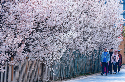 特色:当情人坡两侧成片的樱桃花盛放时,仿佛踏入粉色的梦幻世界,花满枝头,如满天繁星,粉嫩的花瓣在微风中摇曳,呈现出一幅春和景明的画面。众多情侣游客在此处停留、拍照、野餐,尽享春日浪漫。