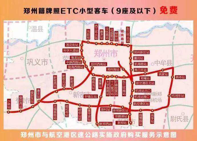 免费站点:和之前免费路段相比,新增了机场、京港澳、郑民、商登、安罗5条高速公路87公里,新增了7个收费站(郑庵站、机场站北口、机场站南口、姚家站、岗李站、韩寺站、机场东站),未来免费路段上新增的收费站,同样享受此政策。