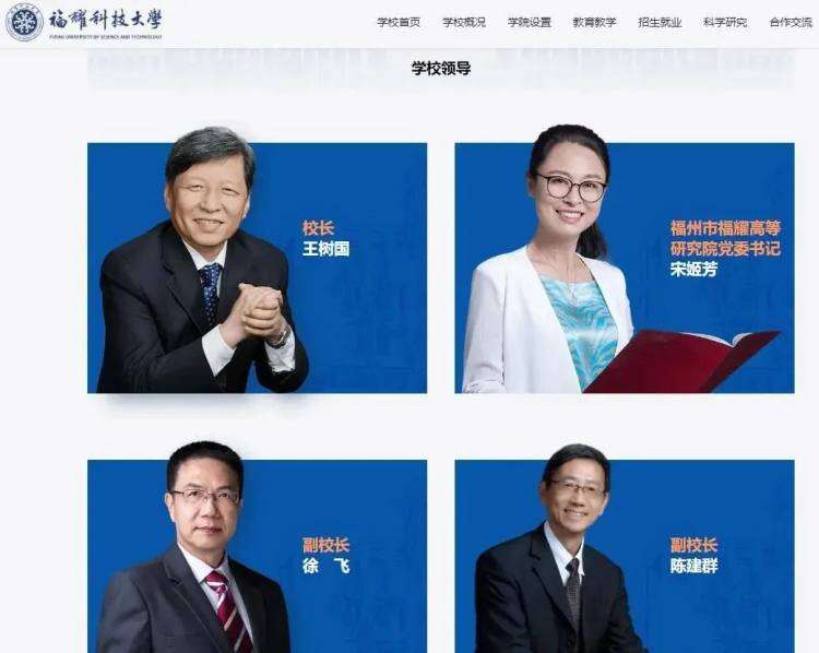 近日,福建福耀科技大学官网更新学校领导页面,该校现任领导正式亮相,王树国任校长,宋姬芳任福州市福耀高等研究院党委书记,徐飞、陈建群任副校长,曹德旺任理事长。