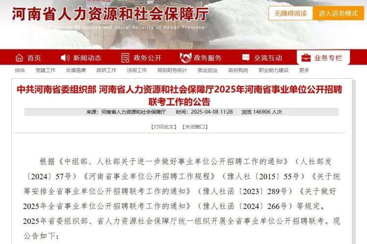 近日,2025年河南省事业单位公开招聘联考工作公告正式发布,共计划招录10793人。考生可于2025年4月11日9∶00至4月17日17∶00登录河南省人事考试中心网站进行网上报名,笔试5月18日进行。详情>>>