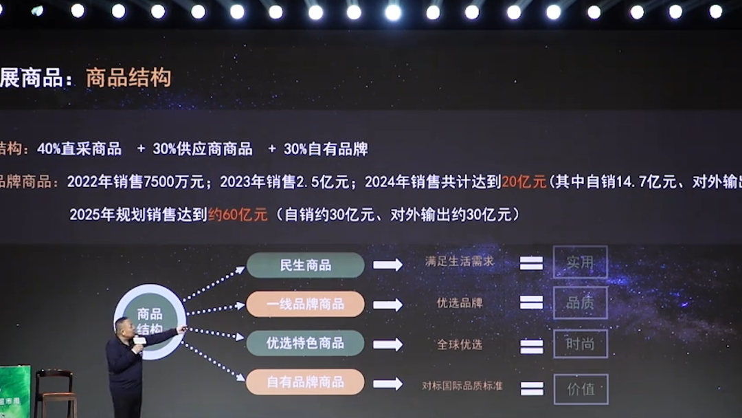 联商东来研究院公开了一段于东来分享企业情况的视频,据于东来透露,2022年胖东来开始开发自有品牌,2025年自有品牌(销售额)将达到60亿元。公开资料显示,胖东来的自有品牌含有橙汁、DL精酿小麦啤酒、DL宝丰自由爱白酒、DL水果燕麦脆、DL压榨一级花生油等商品。据多家媒体报道,胖东来的自有品牌销售火爆,甚至产生了代购业务。