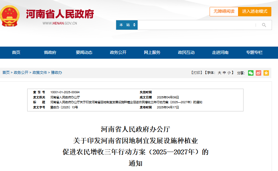 力争用三年时间,全省设施种植业总产值突破900亿元,设施种植业收入占农村居民经营净收入比重提高2个百分点……近日,河南省人民政府办公厅印发《河南省因地制宜发展设施种植业促进农民增收三年行动方案》。详情>>>