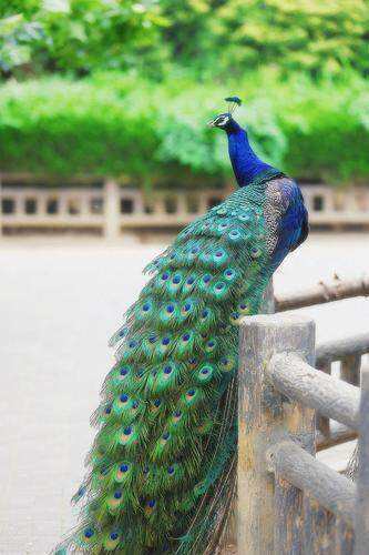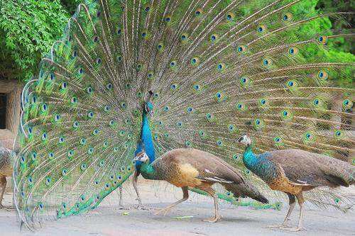 孔雀是最美丽的观赏鸟,是吉祥、善良、美丽、华贵的象征。世上共有两种孔雀:绿孔雀和蓝孔雀。大家所知的白孔雀和黑孔雀其实是蓝孔雀的变种。开屏的行为是它本身生殖腺分泌出的性激素、欲求偶繁衍同自己后代的效果。“五一”假期,正是欣赏孔雀正开屏的时候。