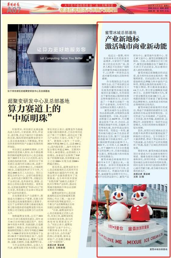 作为现制饮品行业的领军企业,位于郑东新区动力南路与圃田西路交叉口东南角的蜜雪冰城总部基地项目备受瞩目,究其原因在于蜜雪冰城以强劲的发展态势和雄厚的实力,在此打造了一个集多元功能于一体的产业新地标,为郑州乃至全国商业发展注入新活力。