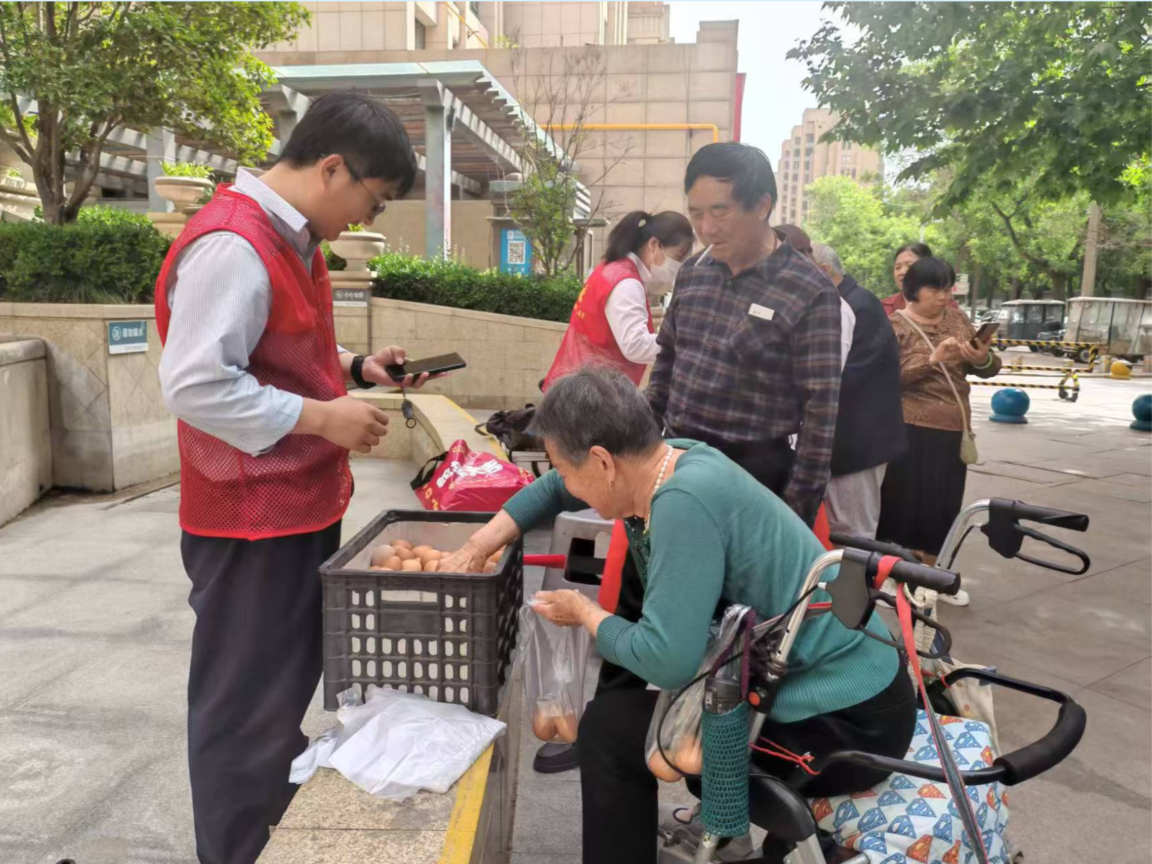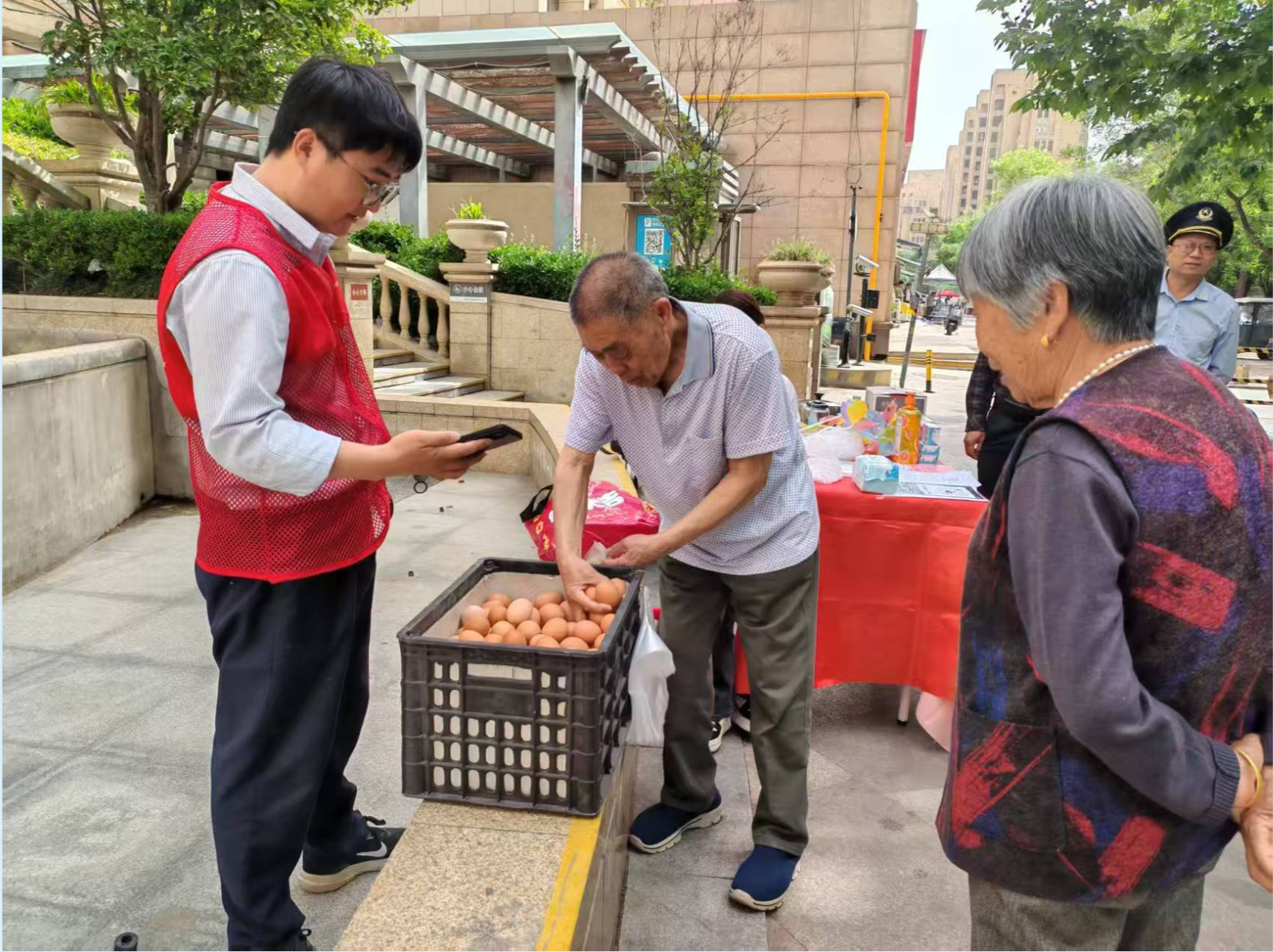 活动开始前,社区工作人员早早地来到活动现场,将一个个鸡蛋摆放在指定的区域内。在规定时间内,居民徒手抓取鸡蛋,抓到的鸡蛋可以免费带回家。