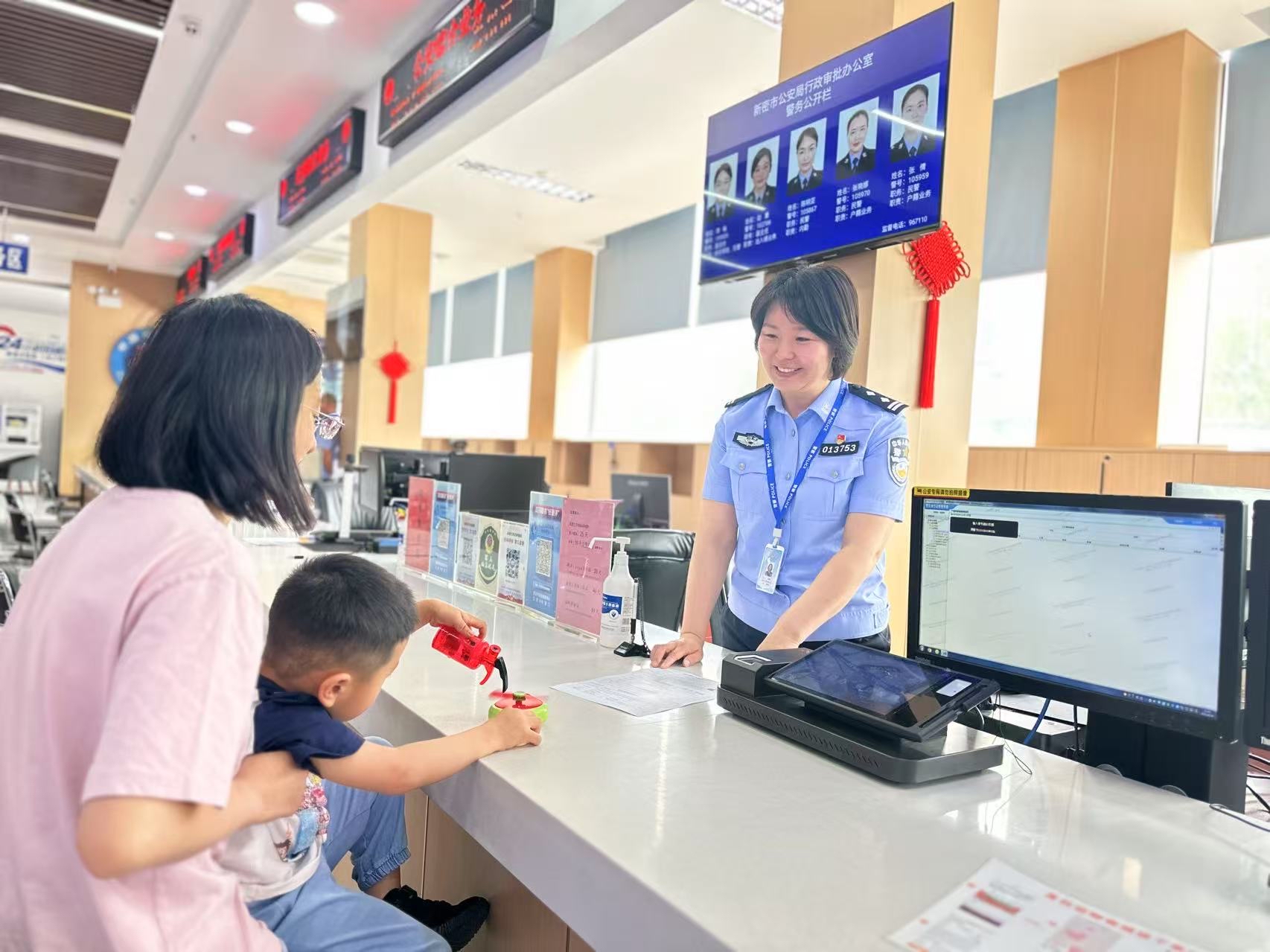“阿姨,这里能给小朋友办理身份证吗?”小男孩试探着询问正在办公工位审批材料的民警。小男孩妈妈笑着说:“不好意思啊!假期路过看见窗口有人办公,就前来咨询一下。”“当然可以。”民警立即停下手中的工作,起身带领小男孩到人像采集区采集照片,通过多次调整拍摄角度和姿势,拍出符合要求的清晰照片,并耐心地一次次引导小朋友完成指纹采集。在上传、审核完相应的资料后,成功地为小男孩办理了身份证业务,并告知领取身份证的方式和时间,民警的贴心服务也受到群众连连称赞。