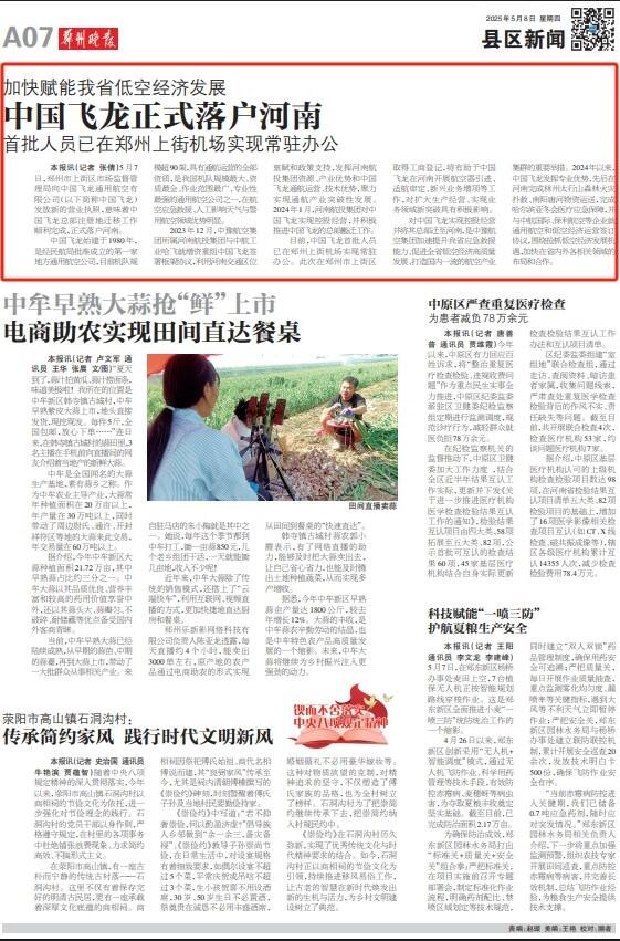 对中国飞龙实现控股经营并将其总部迁至河南,是中豫航空集团加速提升我省应急救援能力、促进全省低空经济高质量发展、打造国内一流的航空产业集群的重要举措。2024年以来,中国飞龙发挥专业优势,先后在河南完成林州太行山森林火灾扑救、南阳唐河物资运送,完成哈尔滨亚冬会医疗应急保障,并与中航国际、保利航空等企业就通用航空和低空经济运营签订协议,围绕抢抓低空经济发展机遇,加快在省内外各相关领域的布局和合作。
