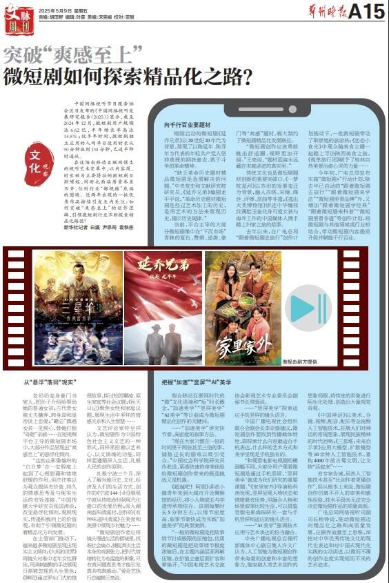 在这场由移动互联网催生的视听艺术变革中,以内容简、时长短为主要特征的微短剧日渐崛起,同时也面临质量参差不齐、位列行业“鄙视链”底端的困境。近两年出现的一批优秀作品持续引发业内关注:如何突破“爽感至上”的创作逻辑,引领微短剧行业不断探索精品化路径?