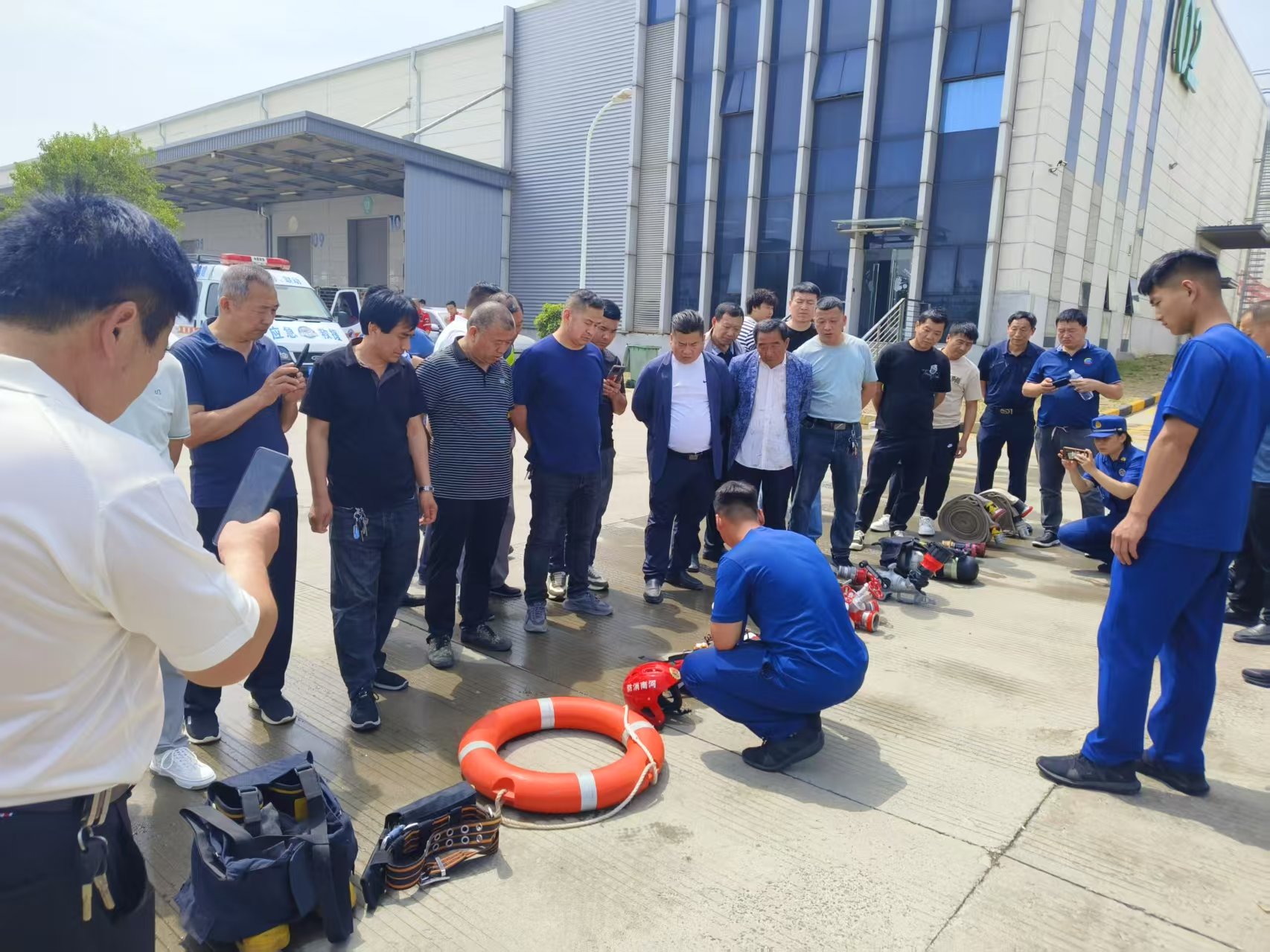 演练现场,消防指导员通过理论讲解与示范操作相结合的方式,详细传授了灭火器、消火栓、消防水喉、过滤式消防自救呼吸器等常用消防器材的使用技巧,并指导参训人员进行实际操作。