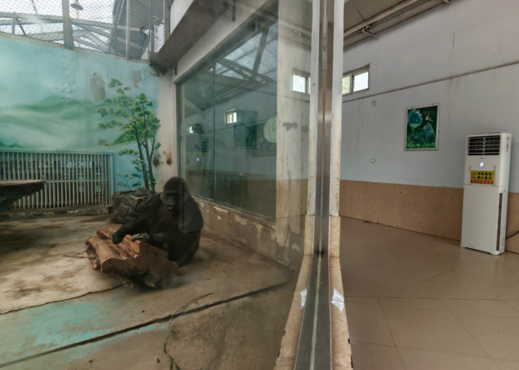 大猩猩是郑州市动物园的镇园之宝,自然享受着最好的待遇,它的馆舍已开了空调,室外温度40℃,而大猩猩馆显示为20℃。大猩猩尼寇自在地待在它的豪宅内,一会儿静坐,一会儿四脚朝天自得其乐。