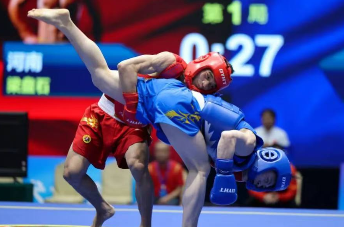 8强拉锯战:逆境翻盘+速胜战术锁定决赛资格5 月24日至25日的八强战中,河南女子团体率先掀起 “进攻风暴”:75公斤级朱雨晴以正蹬腿、抱摔技术两度将对手轰下擂台;52公斤级李玥瑶凭借击腹拳、低鞭腿的快攻组合,43秒即建立12分优势。男子个人60公斤级梁盘石以“1分20秒速胜”演绎种子选手的统治力。