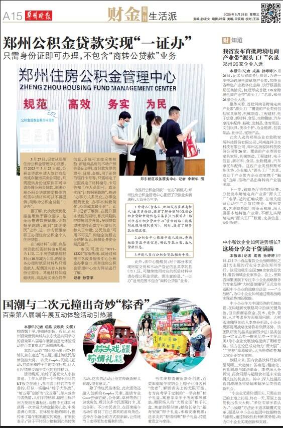 5月27日,记者从郑州住房公积金管理中心获悉,自2025年5月27日起,公积金贷款申请人签订商品房或存量房买卖合同后,只需提供身份证原件即可申请办理公积金贷款,原来办理公积金贷款需要提供的纸质申请材料可以不再提供,简称为公积金贷款“一证办”。