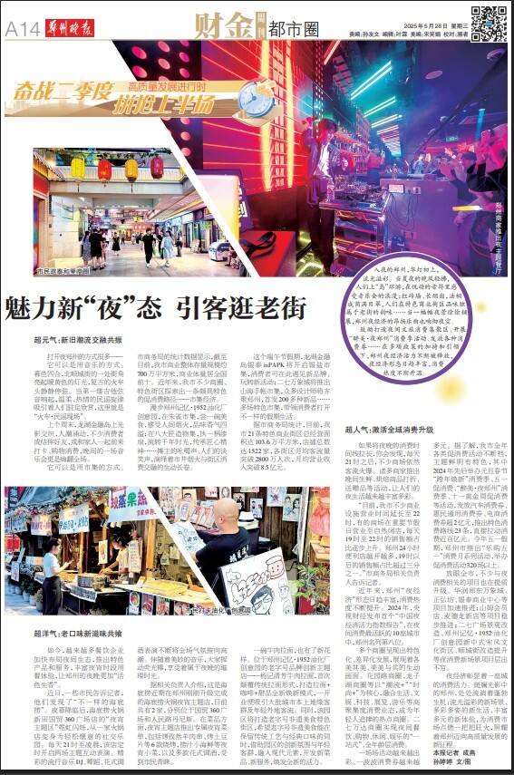 鼓励打造夜间文旅消费集聚区、开展“醉美·夜郑州”消费季活动、发放各种消费券……在多项政策的加持和引领下,郑州夜经济活力不断被释放,夜经济形态日趋丰富,消费热度不断升温。