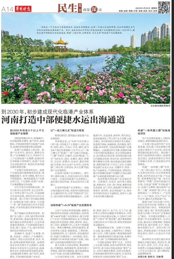 河南是一个不沿边不靠海的地方,虽地处内陆腹地,也有一个通江达海的梦想,为此河南铆足力气补足水运短板发展临港产业。近日,省政府办公厅印发《河南省临港产业发展规划(2025—2035年)》,提出打造中部便捷水运出海通道,构建“三核引领、五带协同、多点支撑”的临港产业发展格局。
