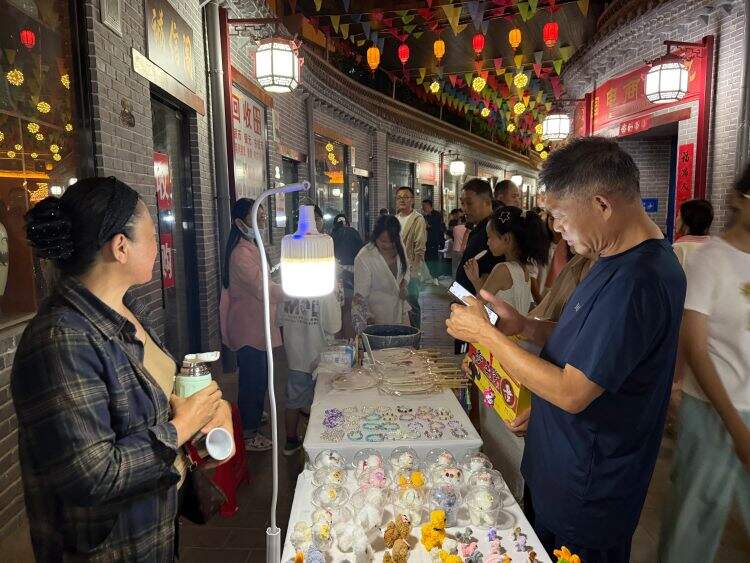 在古玩文玩区,游客们可以淘到各种好玩儿的古玩、文玩、手串儿、古旧书籍等艺术品,在淘宝的过程中感受传统文化的深厚底蕴和博大魅力;文创潮流区则汇聚了各类创意十足的手工艺品、原创艺品、潮玩艺品等国潮商品,这些创意手作和潮流好物,展现出了年轻人、年轻态度的时尚前沿,满足了年轻人对时尚消费和个性体验的追求;逛吃逛喝区则是汇聚了美食小吃、咖啡奶茶、烘焙甜点、轻食轻饮等特色消费,让游客在品尝美味的同时,享受悠闲的城市灯火;祈福体验活动特别准备了祈福牌和祈愿带,游客可以写下自己美好的愿望,亲手挂到砖雕文化墙上。实践专区是本次活动的一大亮点,该专区为年轻人和创业者提供创新、创业、实践的经营平台,倡导和鼓励年轻人发挥创意、展示才华、收获成果。