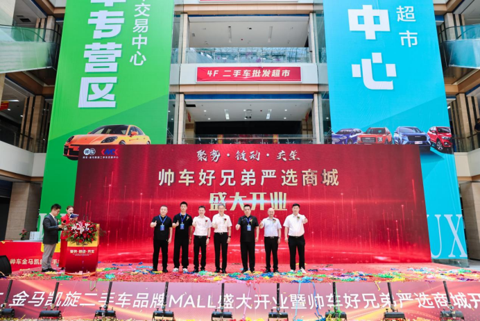上午10点38分,随着各位领导、嘉宾上台,帅车好兄弟严选商城宣布正式开业。现场人潮涌动,开业活动火爆,宣告帅车·金马凯旋二手车品牌MALL开业盛典暨帅车好兄弟严选商城开业庆典成功。