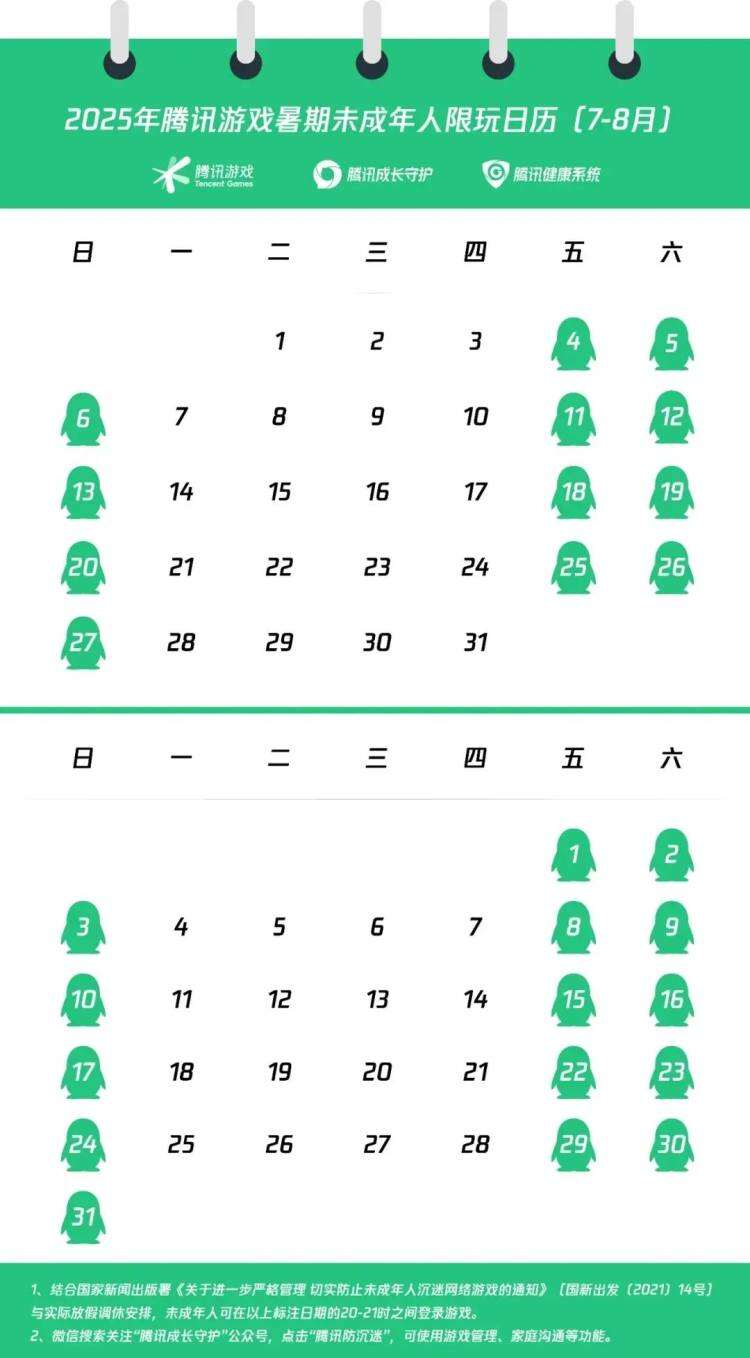 7月3日,腾讯游戏发布了未成年人暑期限玩日历,7月1日~8月31日未成年玩家可以在每周五、周六、周日的20时~21时体验游戏,整个假期总计时长不超过27小时。而《网易游戏2025暑期限玩日历》也显示,暑假期间未成年玩家可体验游戏不超过27小时,与腾讯游戏相同。
