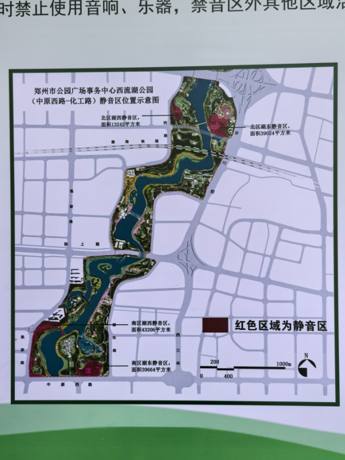 具体措施包括:制定含游园须知、音量控制等内容的统一温馨提示牌,所属7个公园(如人民公园、碧沙岗公园等)结合实际划定21处 “静音区”,静音区任何时段不得开展大音量活动,其他区域需按标识确保活动时段噪声不超60分贝;公园管理人员加强巡查,对违规行为及时劝导纠正。目前碧沙岗公园、西流湖公园等已设置提示牌标注静音区、限音区,静音区环境清幽,游客有序游玩。