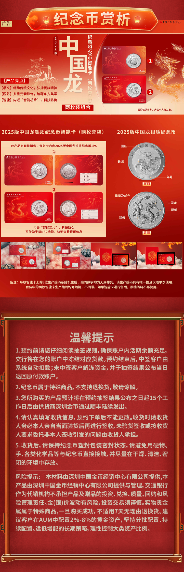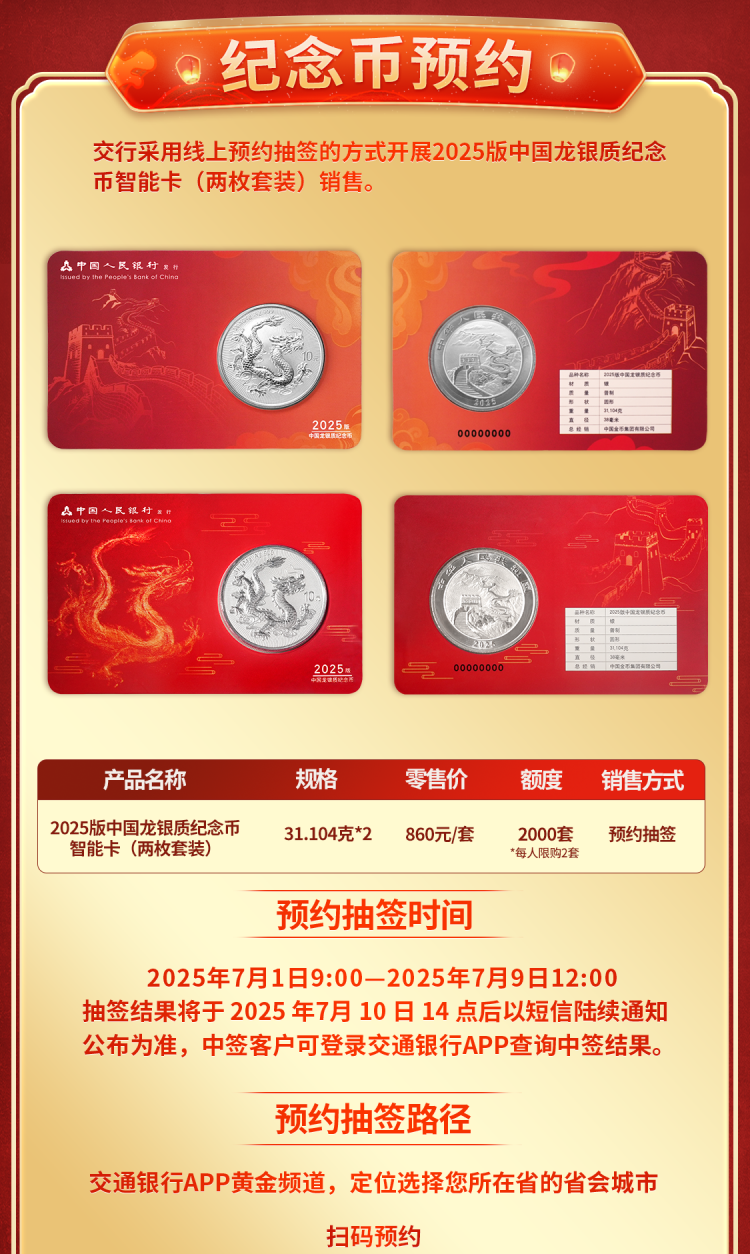 交通银行正式开售2025版中国龙银质纪念币智能卡
