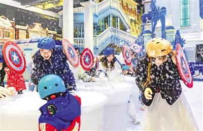 冰雪世界热闹打雪仗