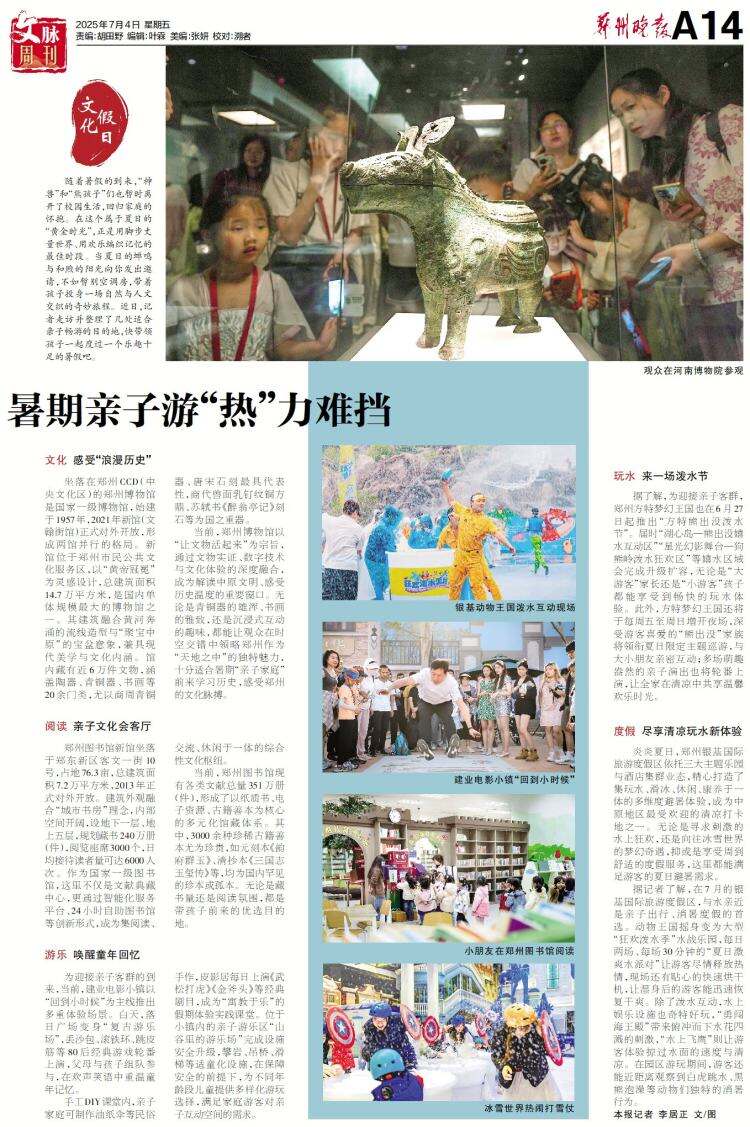 当前,郑州博物馆以“让文物活起来”为宗旨,通过文物实证、数字技术与文化体验的深度融合,成为解读中原文明、感受历史温度的重要窗口。无论是青铜器的雄浑、书画的雅致,还是沉浸式互动的趣味,都能让观众在时空交错中领略郑州作为“天地之中”的独特魅力,十分适合暑期“亲子家庭”前来学习历史,感受郑州的文化脉搏。