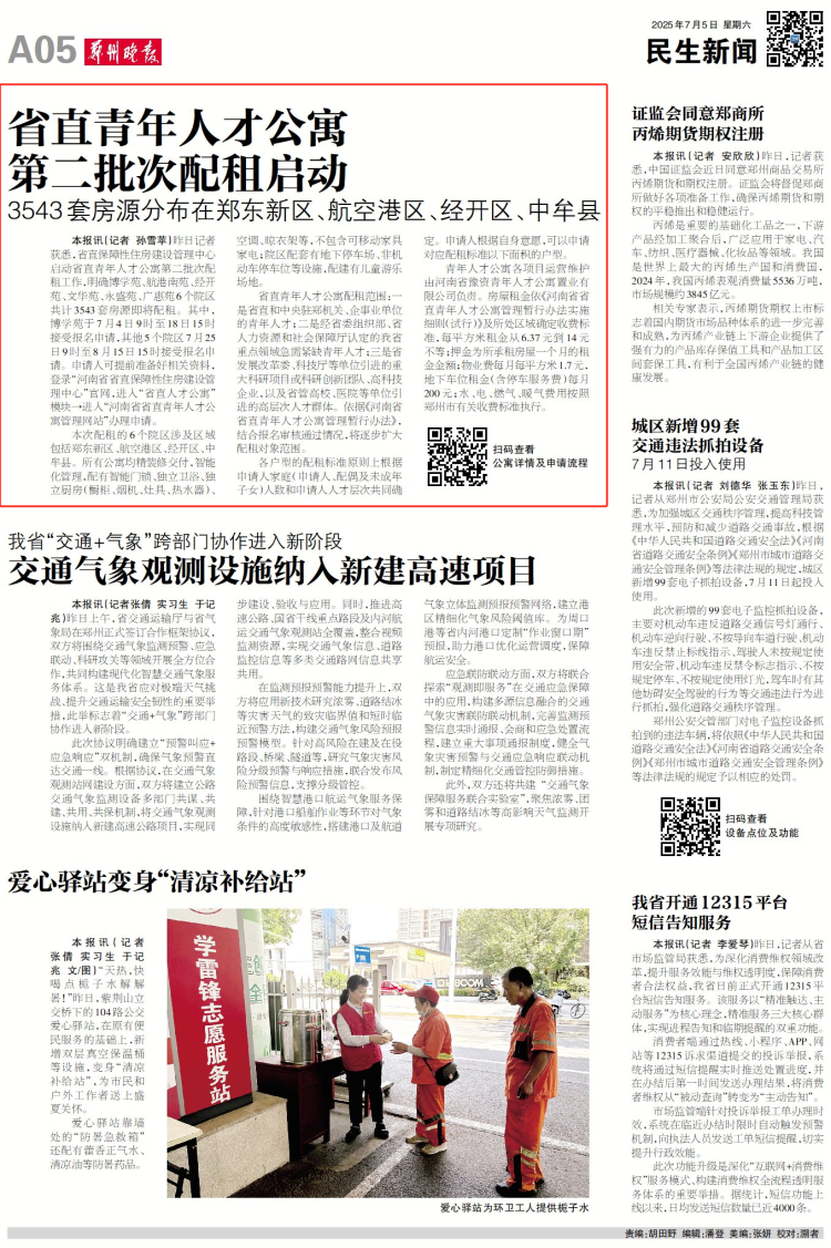 本报讯(记者 孙雪苹)昨日记者获悉,省直保障性住房建设管理中心启动省直青年人才公寓第二批次配租工作,明确博学苑、航港南苑、经开苑、文华苑、永盛苑、广惠苑6个院区共计3543套房源即将配租。其中,博学苑于7月4日9时至18日15时接受报名申请,其他5个院区7月25日9时至8月15日15时接受报名申请。申请人可提前准备好相关资料,登录“河南省省直保障性住房建设管理中心”官网,进入“省直人才公寓”模块→进入“河南省省直青年人才公寓管理网站”办理申请。
