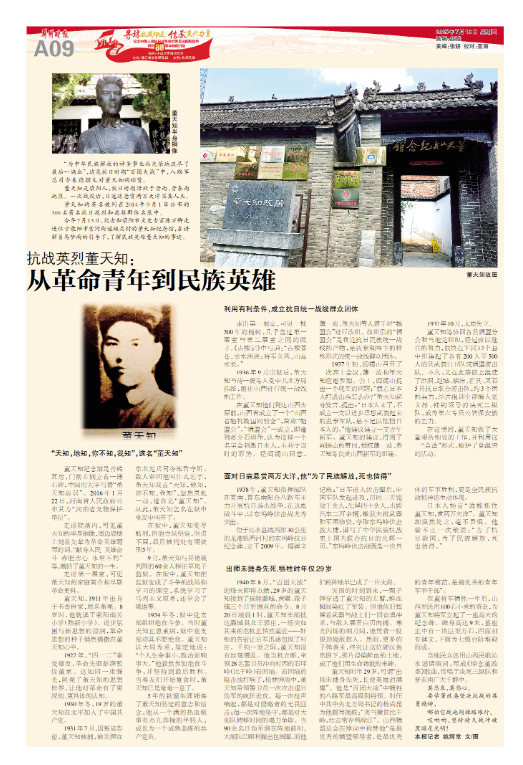 “为中华民族解放的神圣事业而光荣地流尽了最后一滴血”,这是抗日时期“百团大战”中,八路军总司令朱德撰文对董天知的称赞。