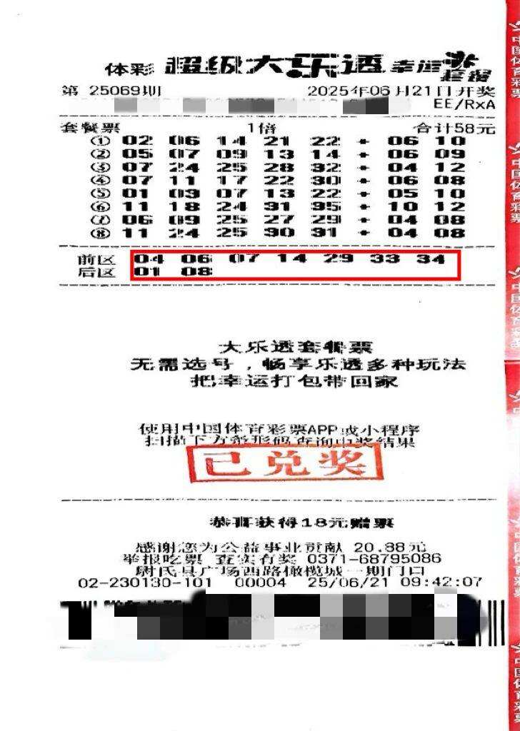 6月21日开奖的大乐透第25069期,开封购彩者李先生购买的大乐透58元套餐票,其中复式投注中得当期三等奖。李先生说,自从有了套餐票,省去了选号“烦恼”,只需选择相应套餐值,机器便自动组合出来一张大乐透彩票,“选号随机,幸运随机。”